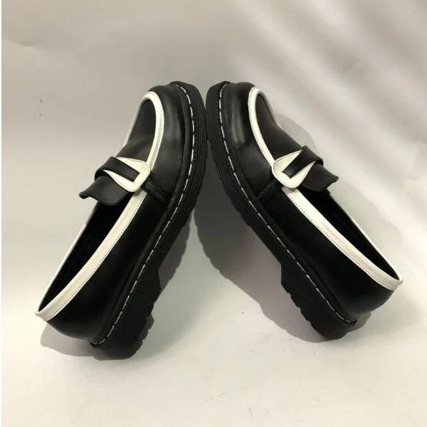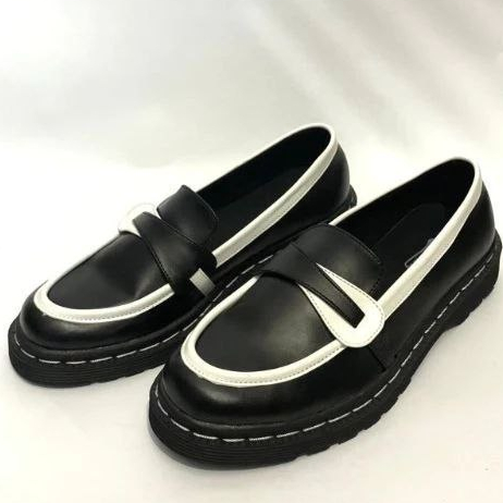 Sepatu Docmart Kombinasi Penny Loafers Black White Tassel - Sepatu Loafers Pria Wanit
