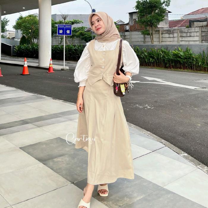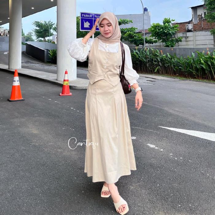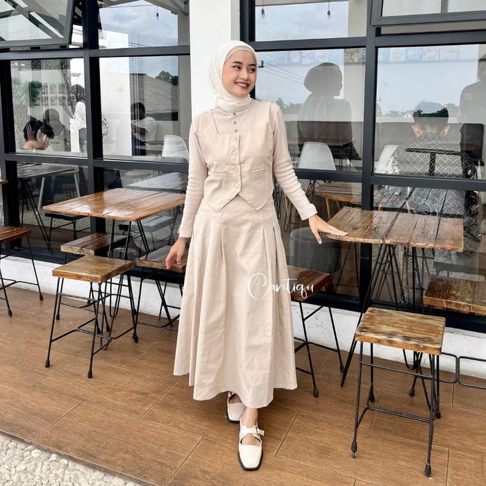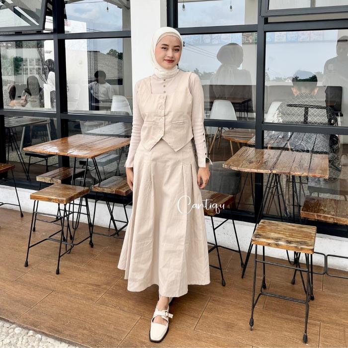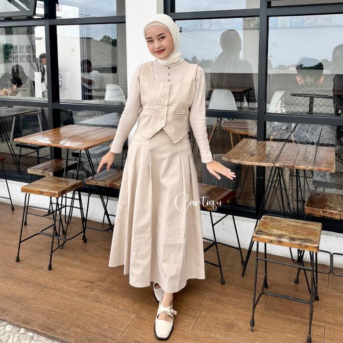 One Set Zeela Vest Setelan Atasan Bawahan Wanita Katun Twill Panjang Dewasa - Zeela Set Black, Standar