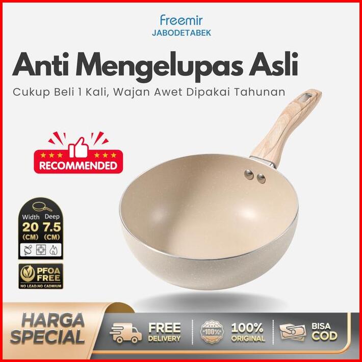 Mega Sale Best Seller Freemir Wajan Cekung Anti Mengelupas Anti Lengket Anti Gores Beige 20 Cm Kapasitas 3 Orang Goreng