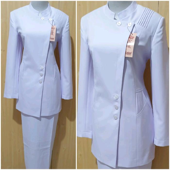 Stelan Seragam Putih Polos Tenaga Kesehatan Set Rok Dan Celana Setelan Blazer Wanita - Baju/Atasan, S