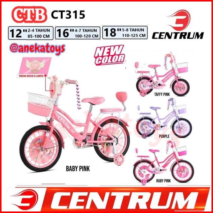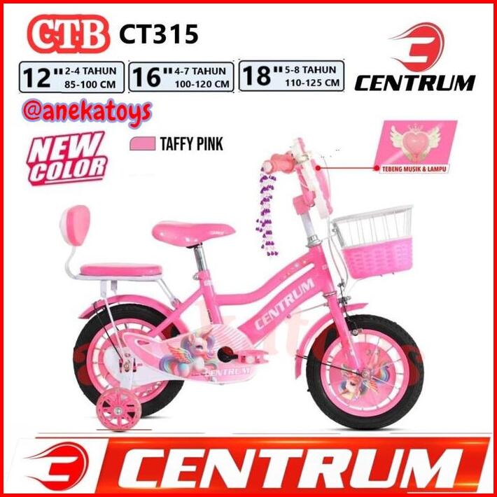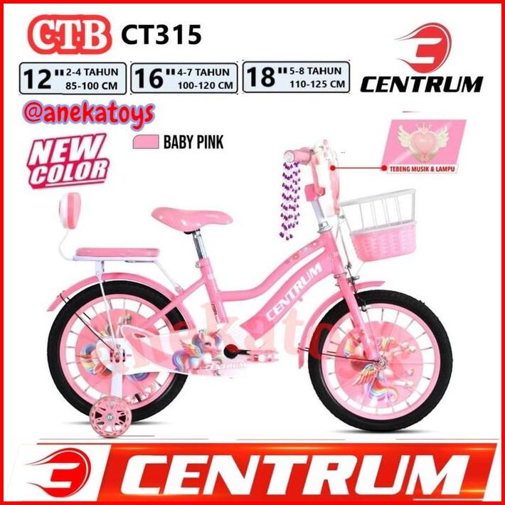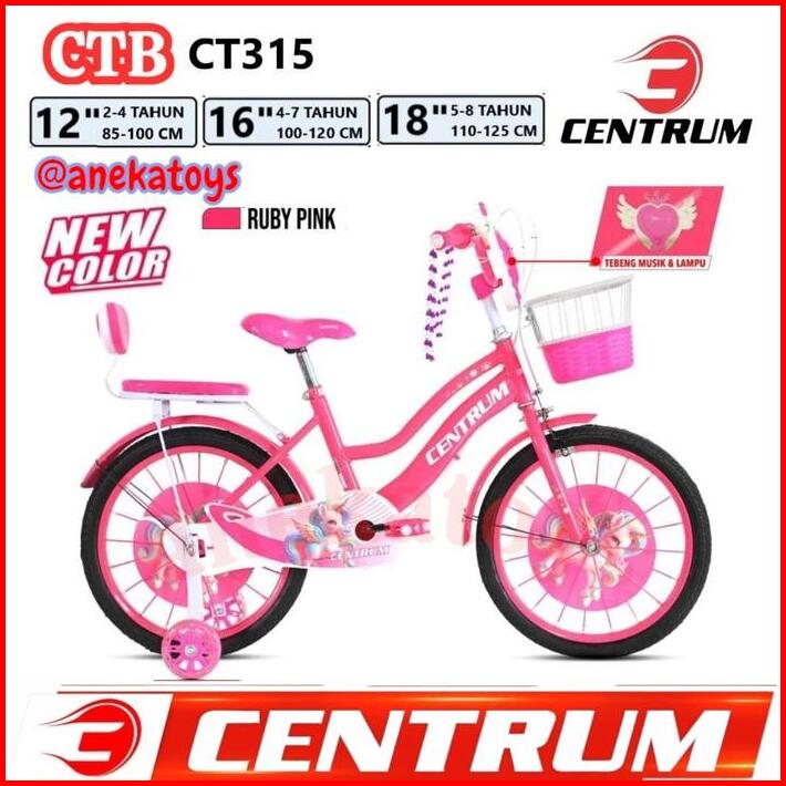Sepeda Mini Anak Perempuan Centrum Ct315 Kuda Pony 12 16 18 Inch Tameng Musik Lampu 2-8 Tahun