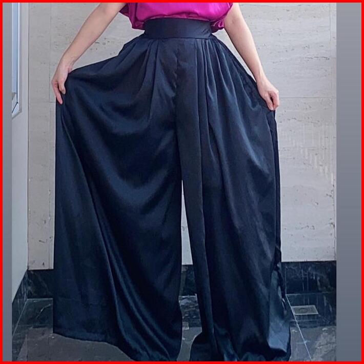 Kulot Lebar Satin Casual Basic Panjang Wanita Celana Oversize Bawahan
