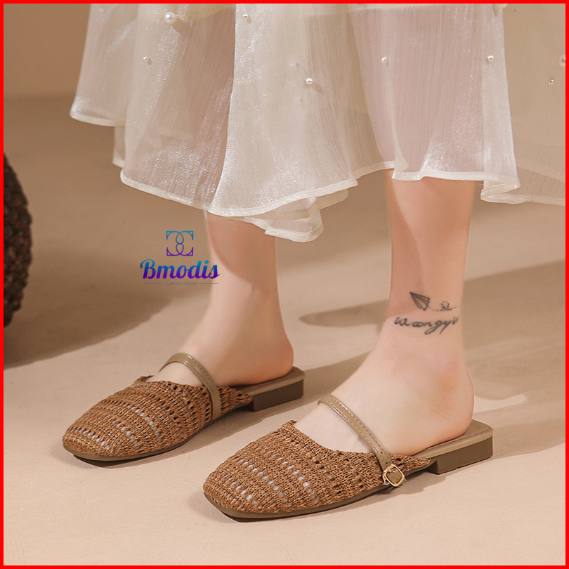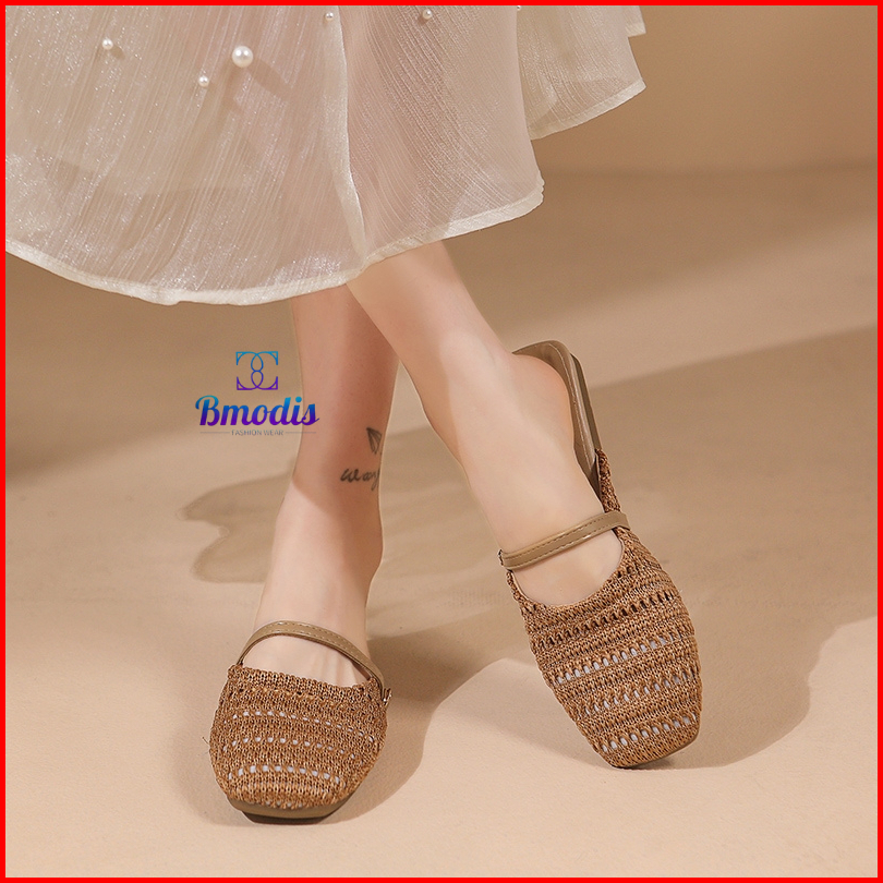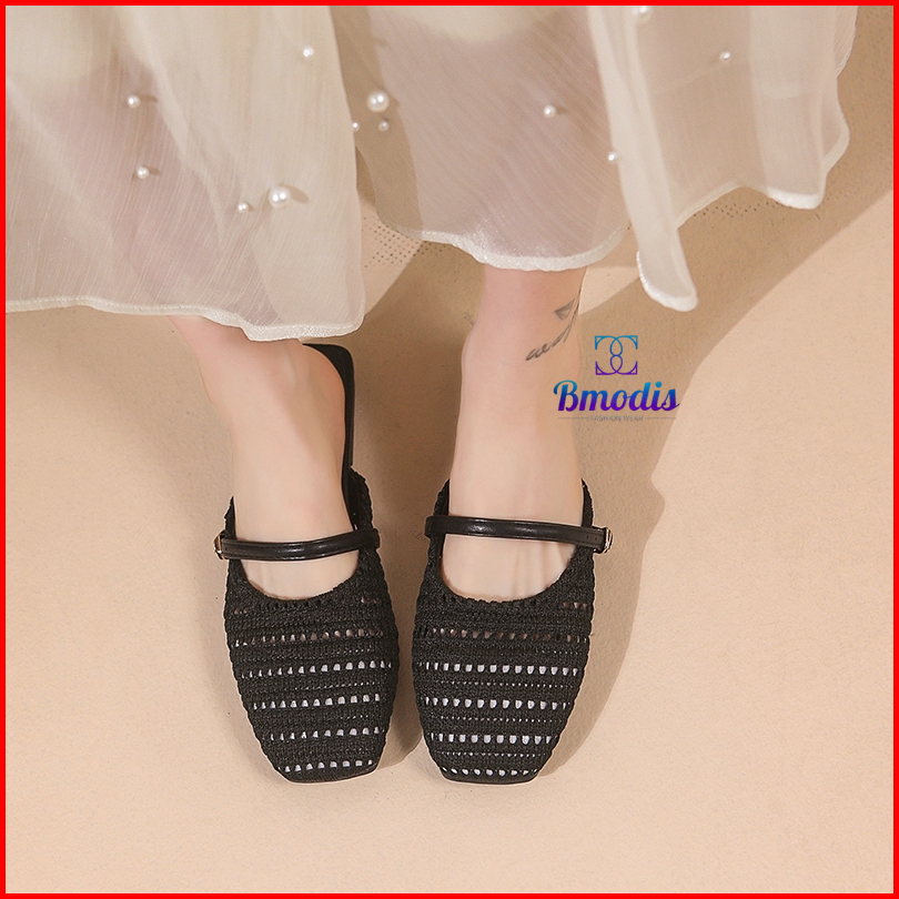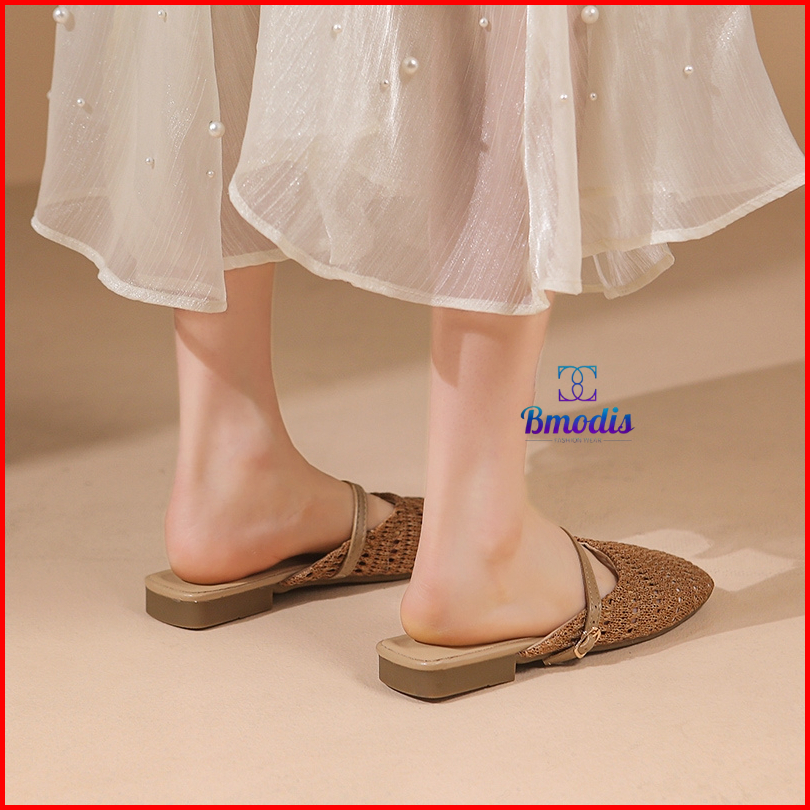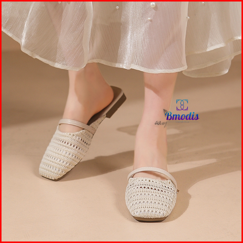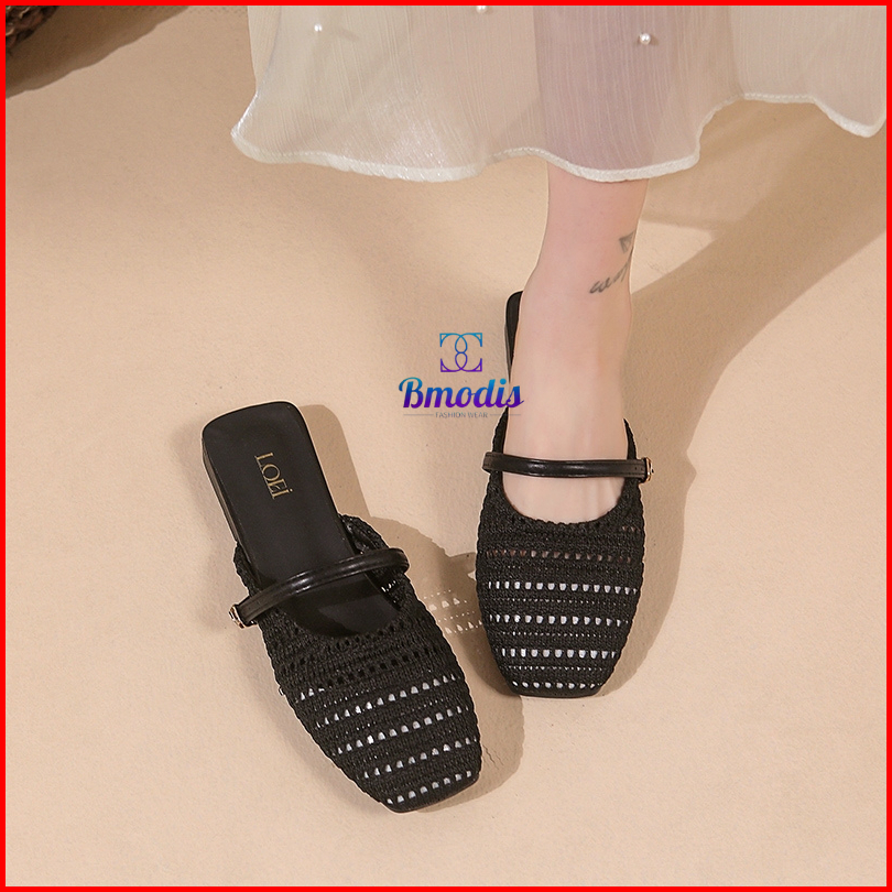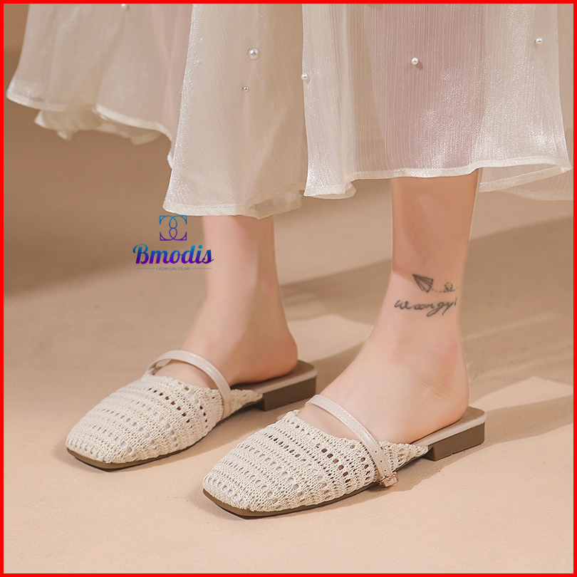 5122 Sandal Flat Mules Rajut Wanita Fashion Kekinian With Box