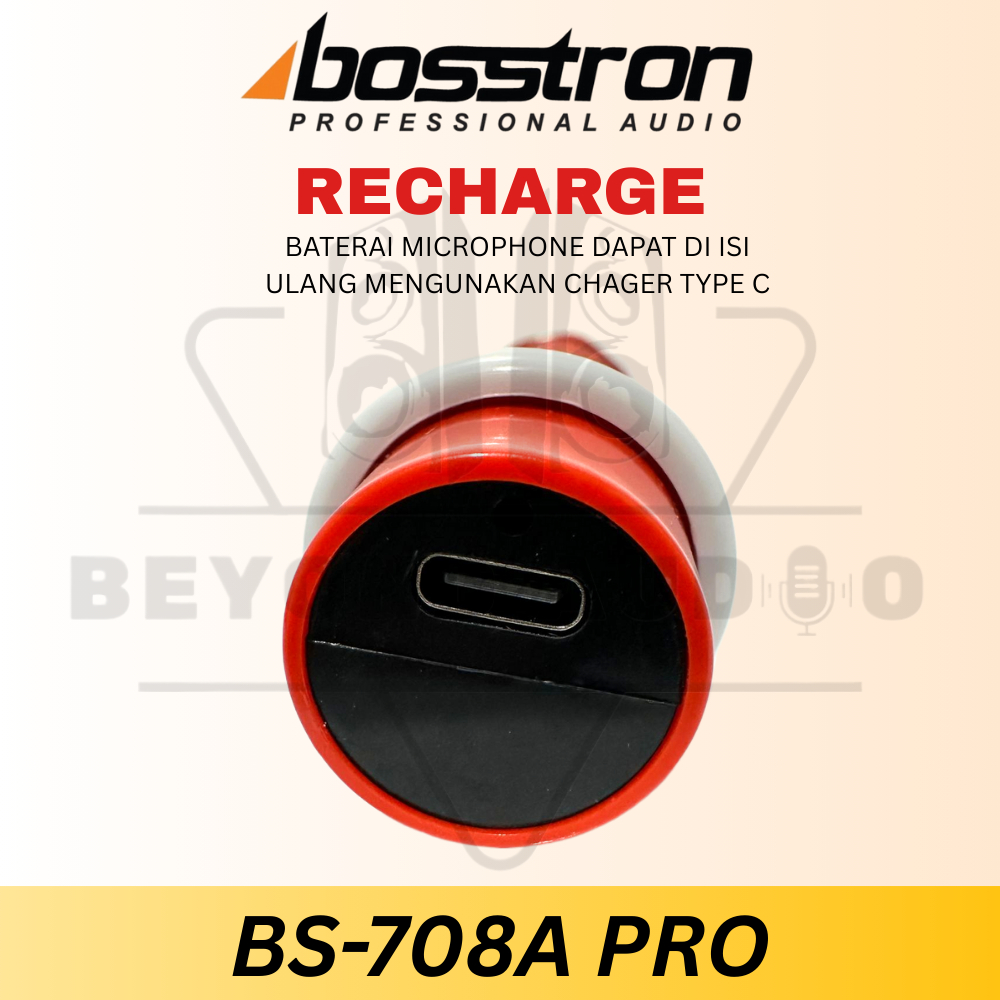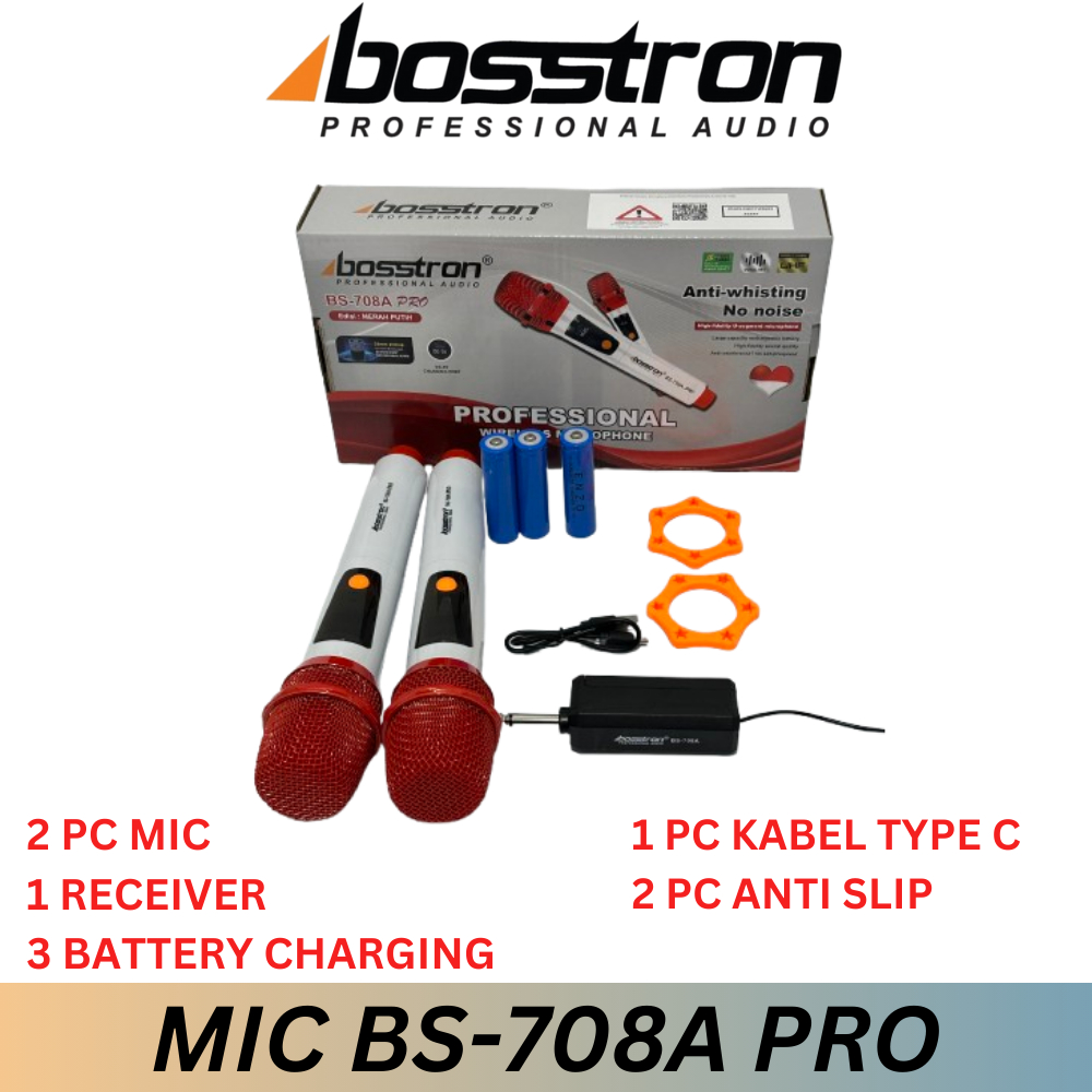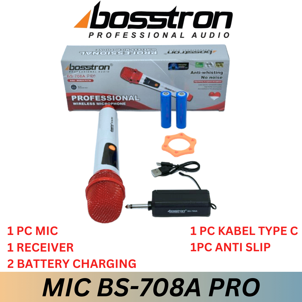 Bosstron Mic Microphone Mikrofon Wireless BS-708A PRO Merah Putih Mic Karaoke