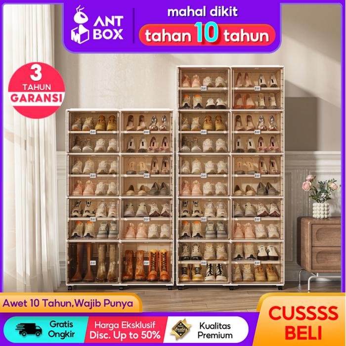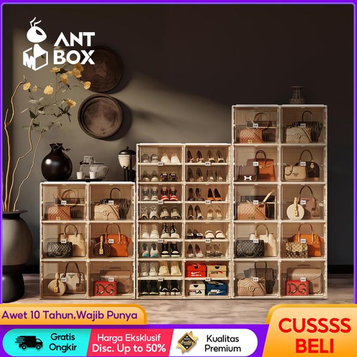 Antbox Rak Sepatu 2Tingkat Transparan Kotak Sepatu Lipat Minimalis Dari Akrilik Untuk Penyimpanan Serbaguna Lemari Sepat