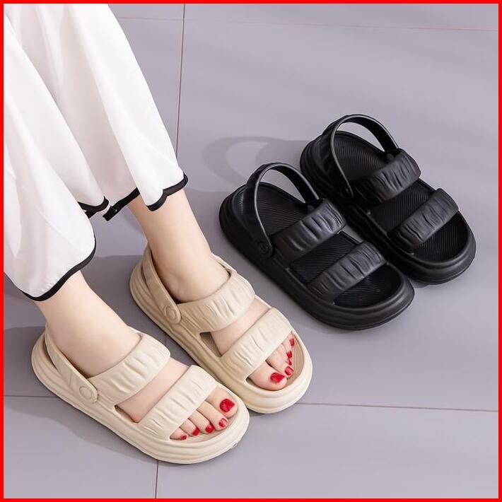 Sepatu Sendal Wanita Korea Slip On Sandal Wanita Selop Tali Belakang Hitam Cewek