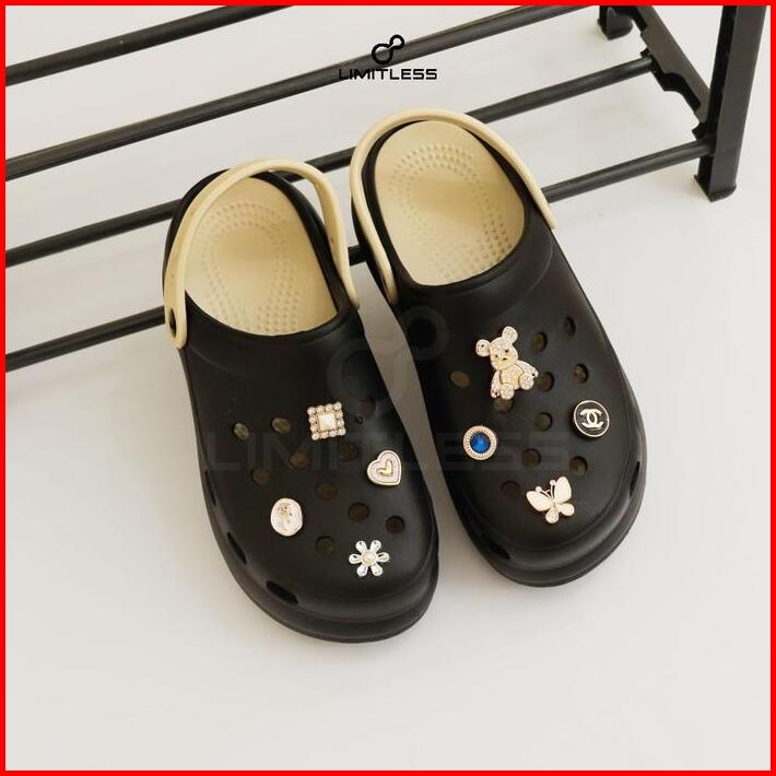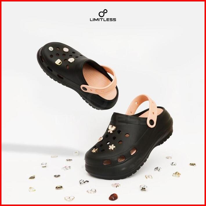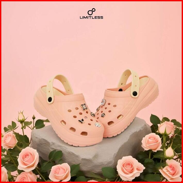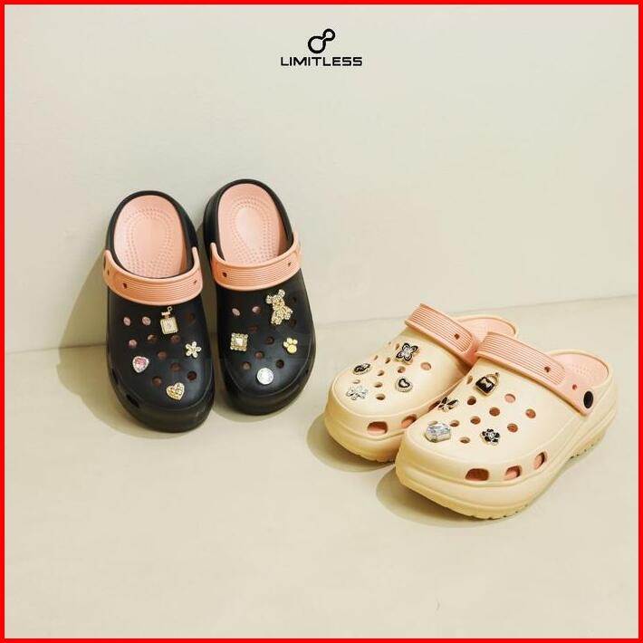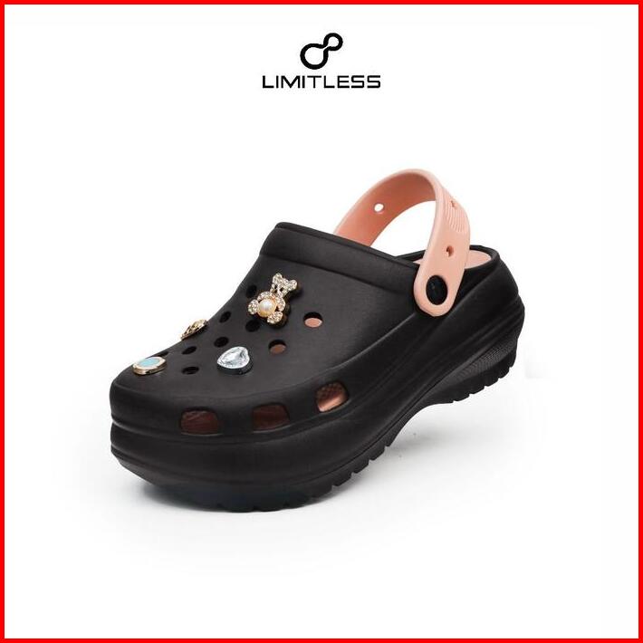 Sandal Wanita Eva Slop Wedges Sticker Permata Sendal Slip On Cewek Tinggi Tali Platform Kekinian Terbaru Sandal Selop Ce