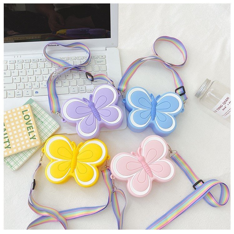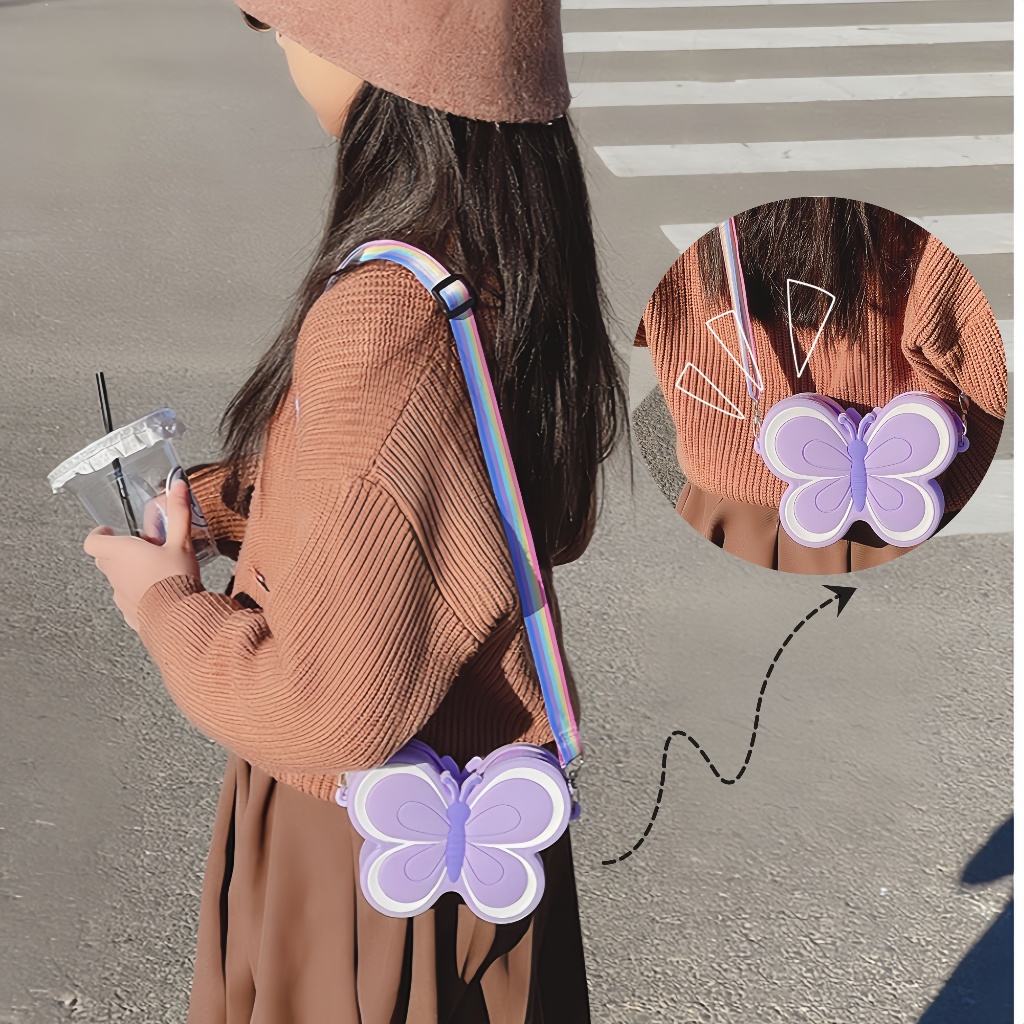 [Ready] Tas Silikon Tahan Air Kartun Bunga Kupu-Kupu Tas Bahu Diimpor Dari Korea Dompet Koin Tas Jelly Anak Perempuan Do