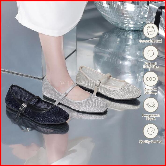 Winod Jeslyn Flatshoes Wanita Sepatu Balet Flat Slip On Model Jaring Casual Sepatu Model Jaring Daily