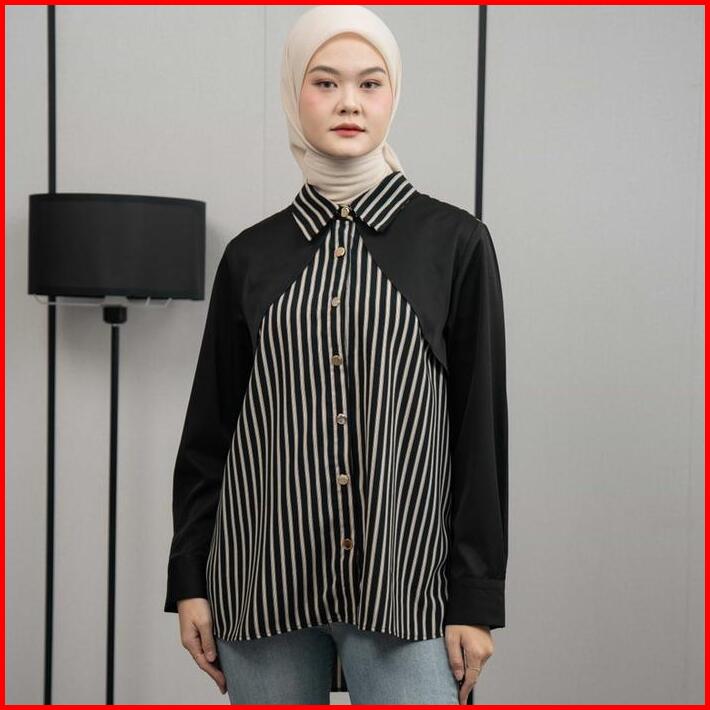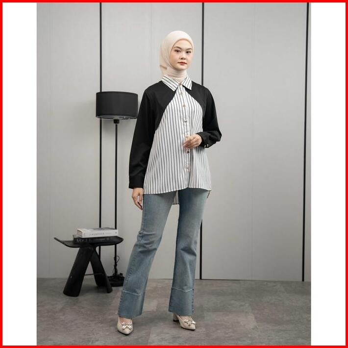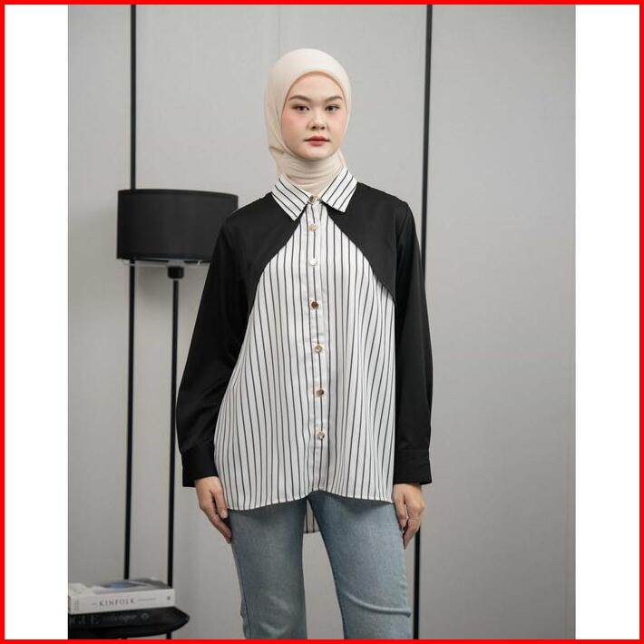 Mayoutfit Eloa Shirt Kemeja Wanita Stripe Kombi Two Tone Motif Garis