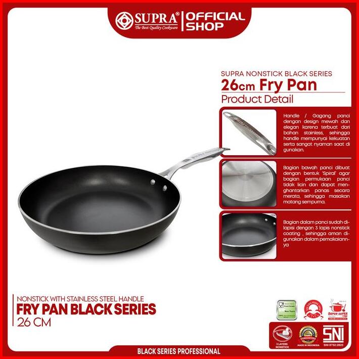 Supra Panci Wajan Penggorengan Anti Lengket Frypan 26 Cm Professional Black Series
