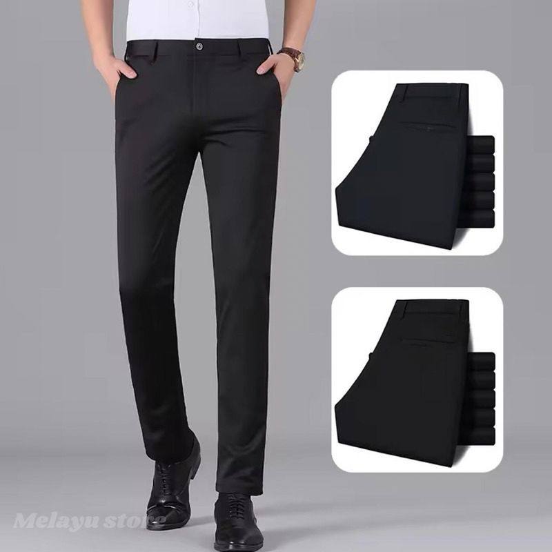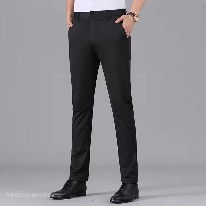 CELANA BAHAN KERJA FORMAL KANTOR PANJANG HITAM DASAR PRIA SLIMFIT