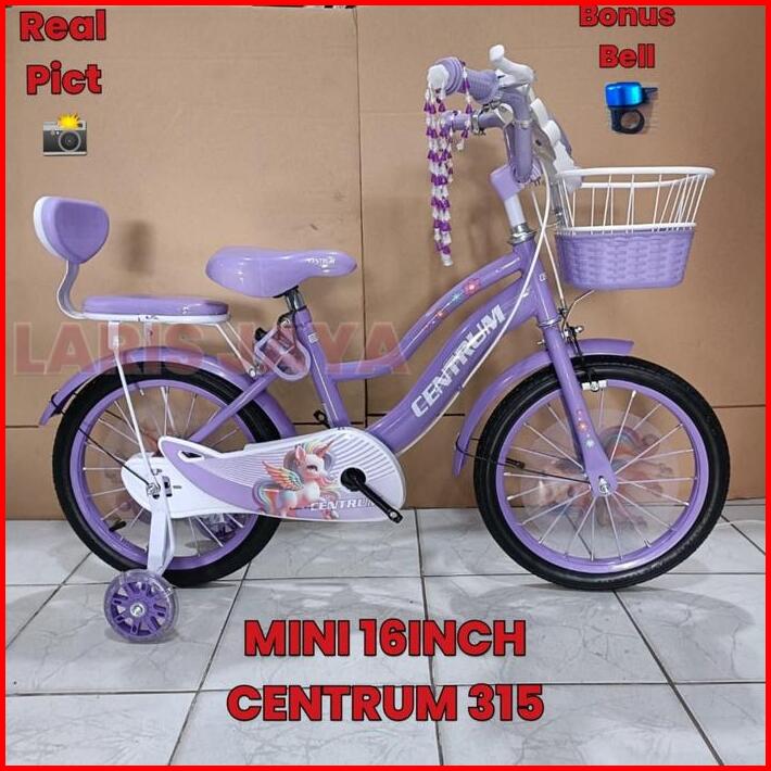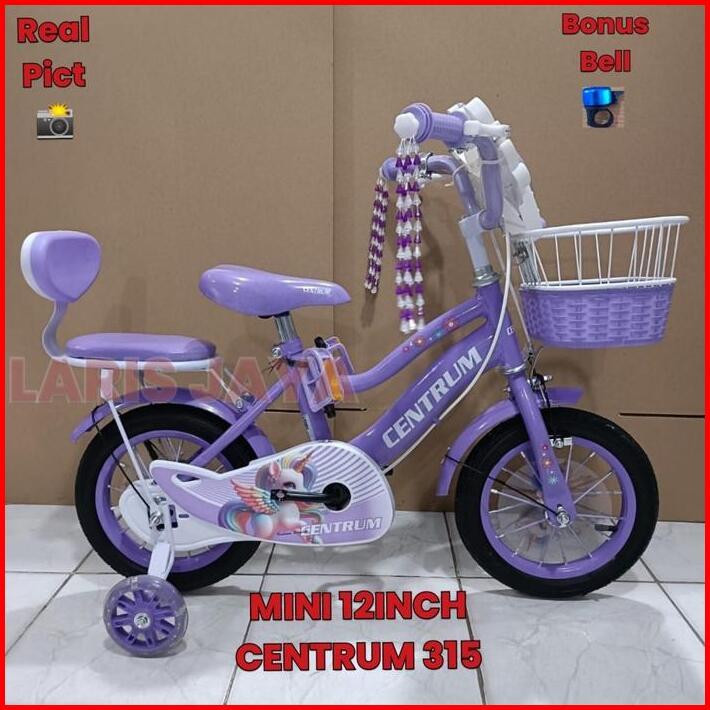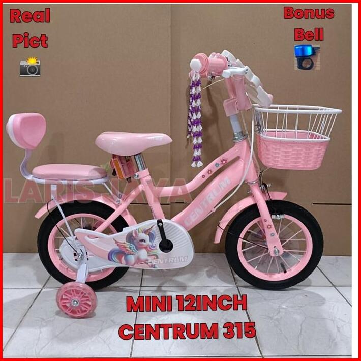 Sepeda Mini 12 16 18 Inch Centrum Ada Musik Dan Lampu Anak Cewek Usia 3-9 Tahun Ada Boncengan Dan Spakbor High Quality S