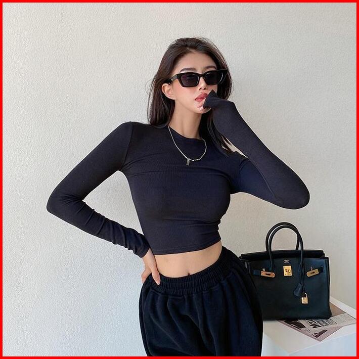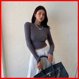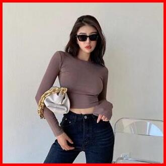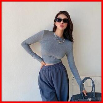Premiumwomen S Crew Neck Long Sleeve Slim Fit Basic Top 7290 S M L