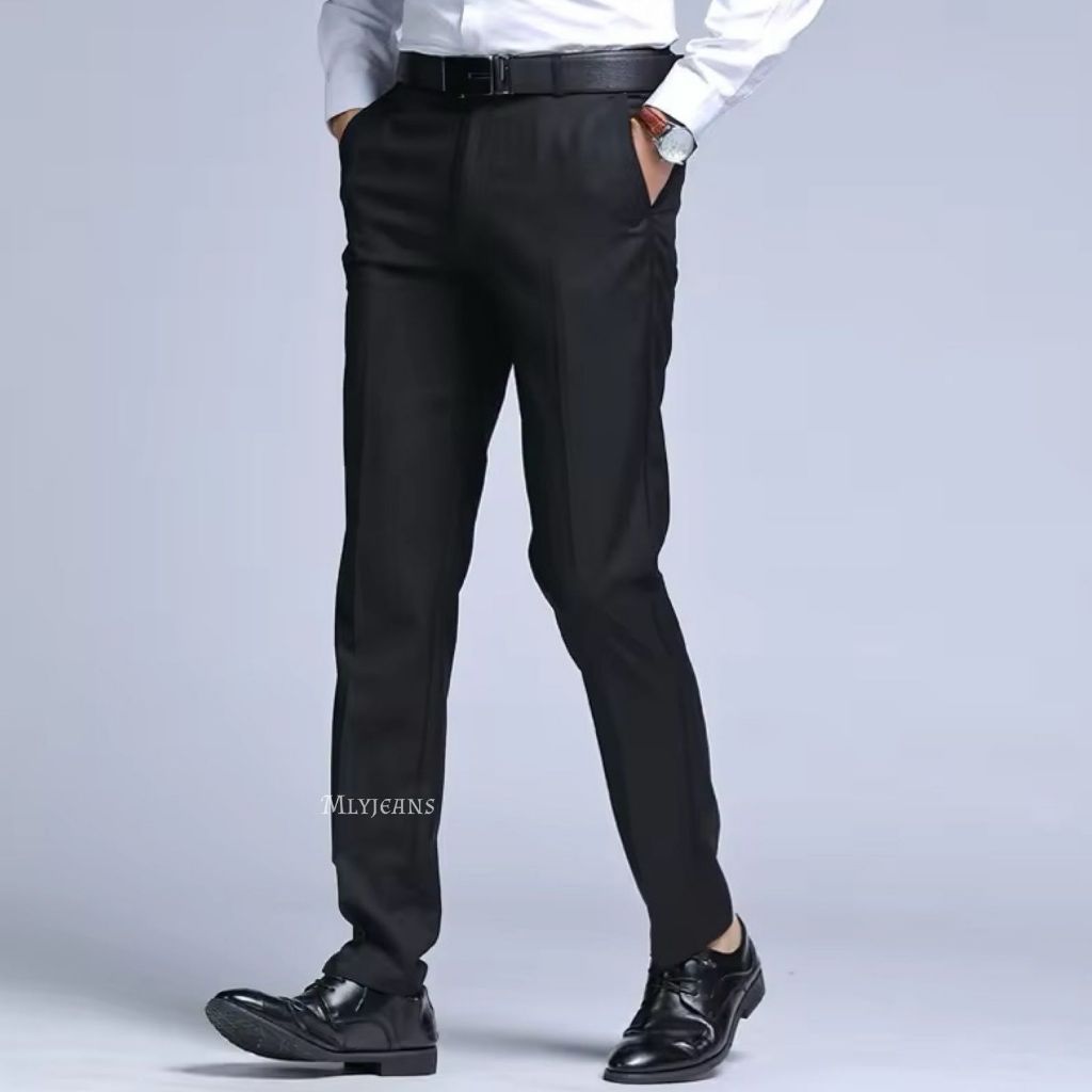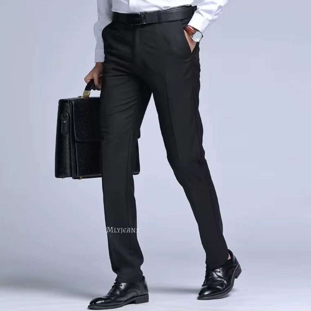 CELANA BAHAN | KERJA | FORMAL | KANTOR | PANJANG | HITAM | DASAR PRIA SLIMFIT SEZE 27