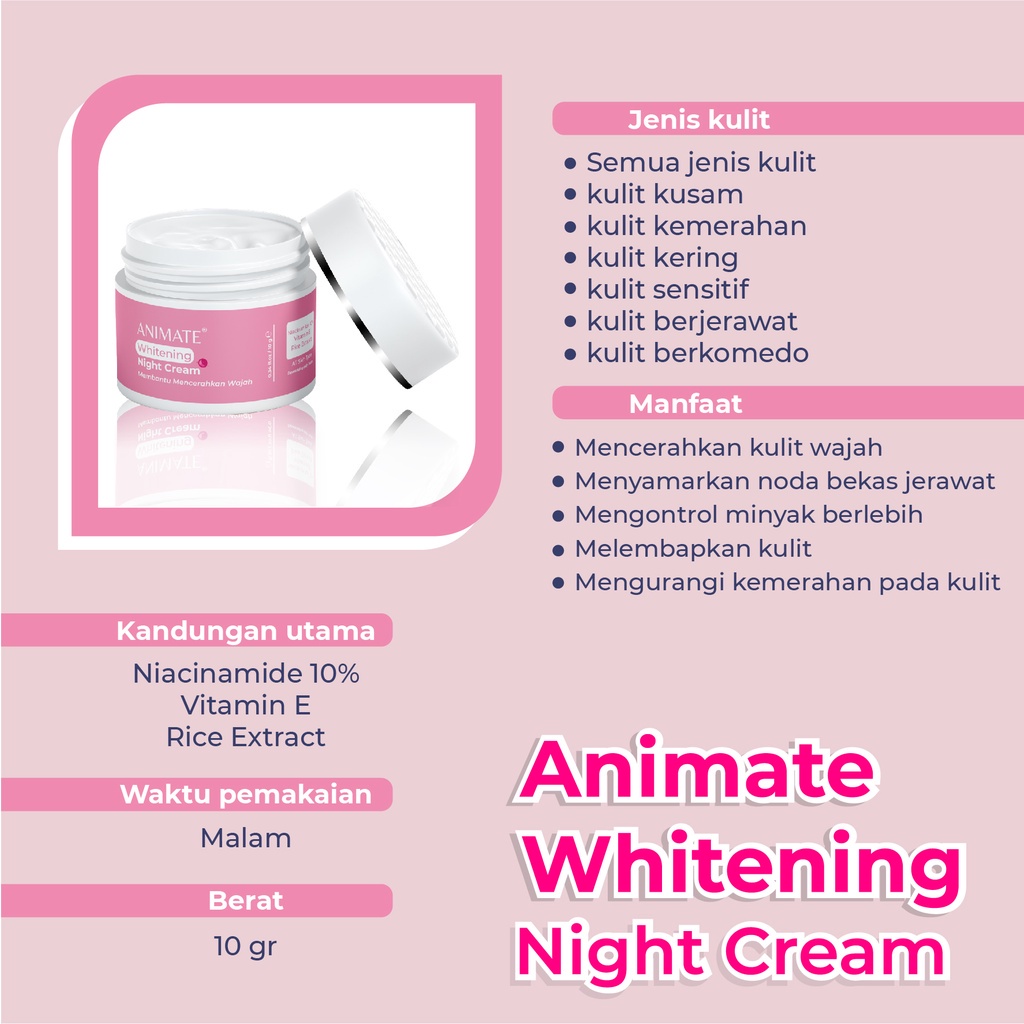 Animate Whitening Series Day Cream Night Cream Face wash Toner Krim Pemutih Animate Skincare