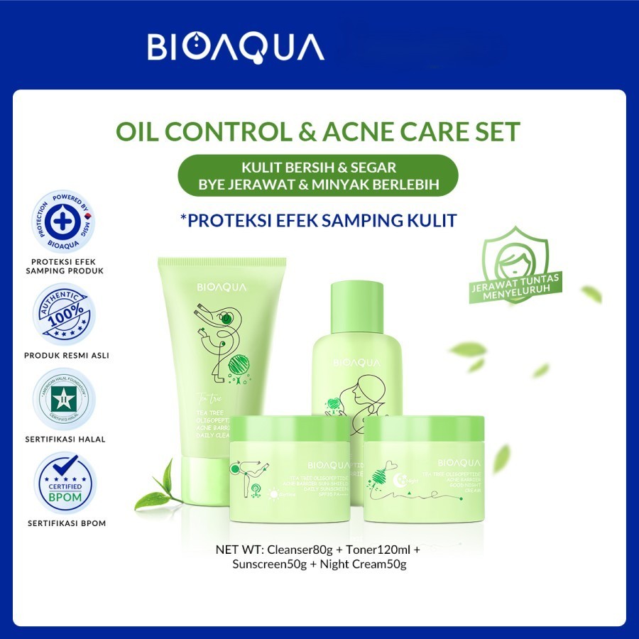 AS BIOAQUA 4pcs Skincare Paket Niacinamide Glowing Set | Acne Set Tea Tree Bio Aqua