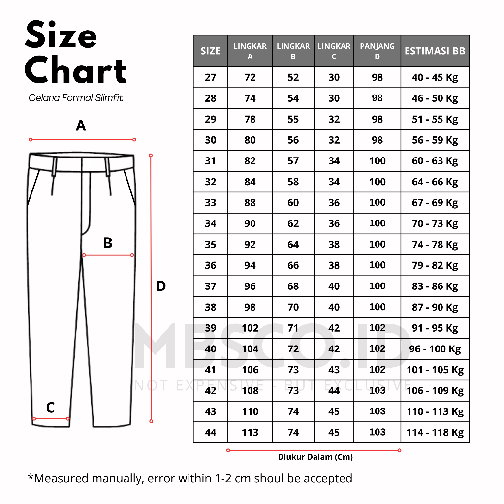 MBSCO - Celana Panjang Pria Formal Slimfit Premium Original 27 - 38