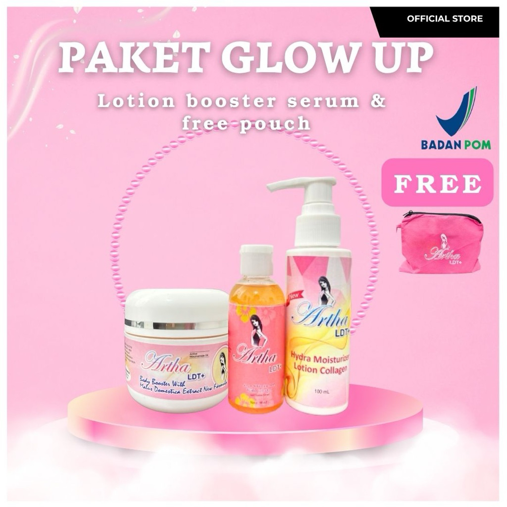 ARTHA LDT + - Paket Glow Up Serum Free Pouch (Lotion, Booster, Serum Aha, Pouch)