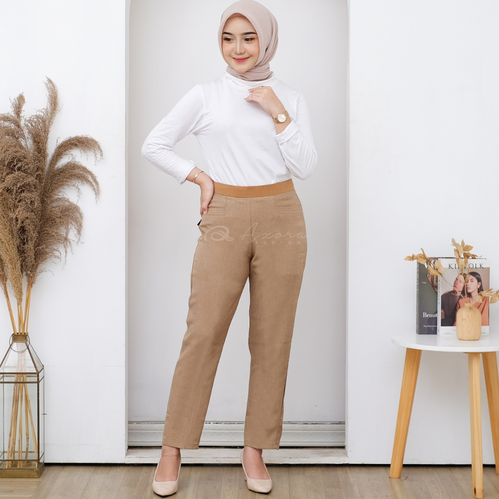 Celana Kerja Wanita Kantor Pinggang Karet Bahan Wol