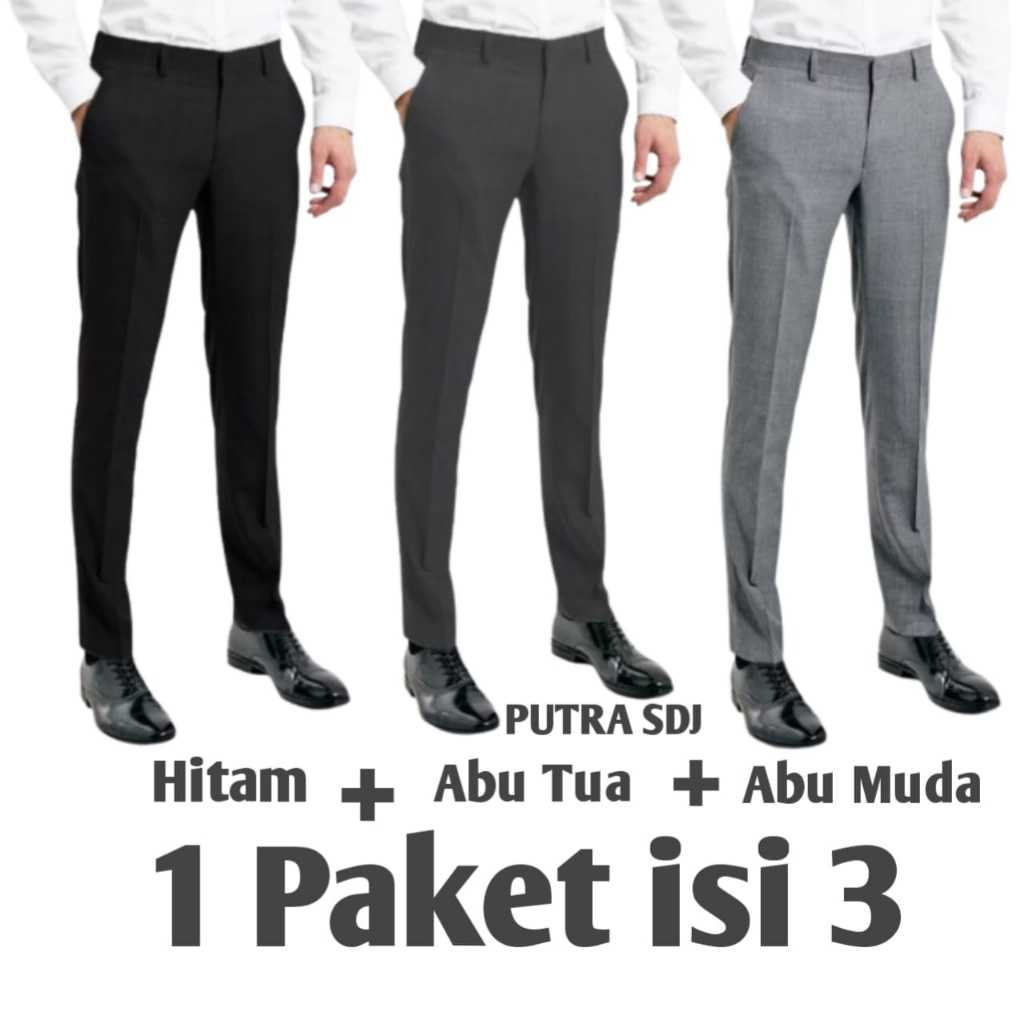 PROMO 1 PAKET ISI 3 PCS CELANA KANTOR FORMAL PRIA SLIMFIT BAHAN DASAR KAIN WOLL KUALITAS