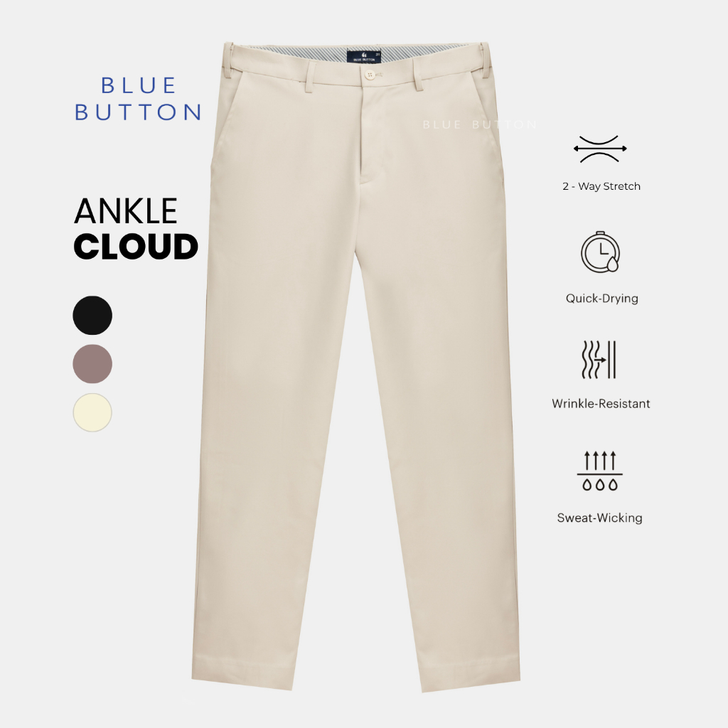 BlueButton Trouser Celana Bahan Pria Strecth Celana Ankle Pants Cloud