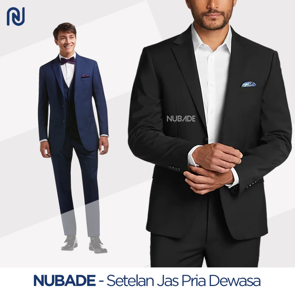 NUBADE - Jas Blazer Wisuda Pria Formal Polos Warna Hitam Navy