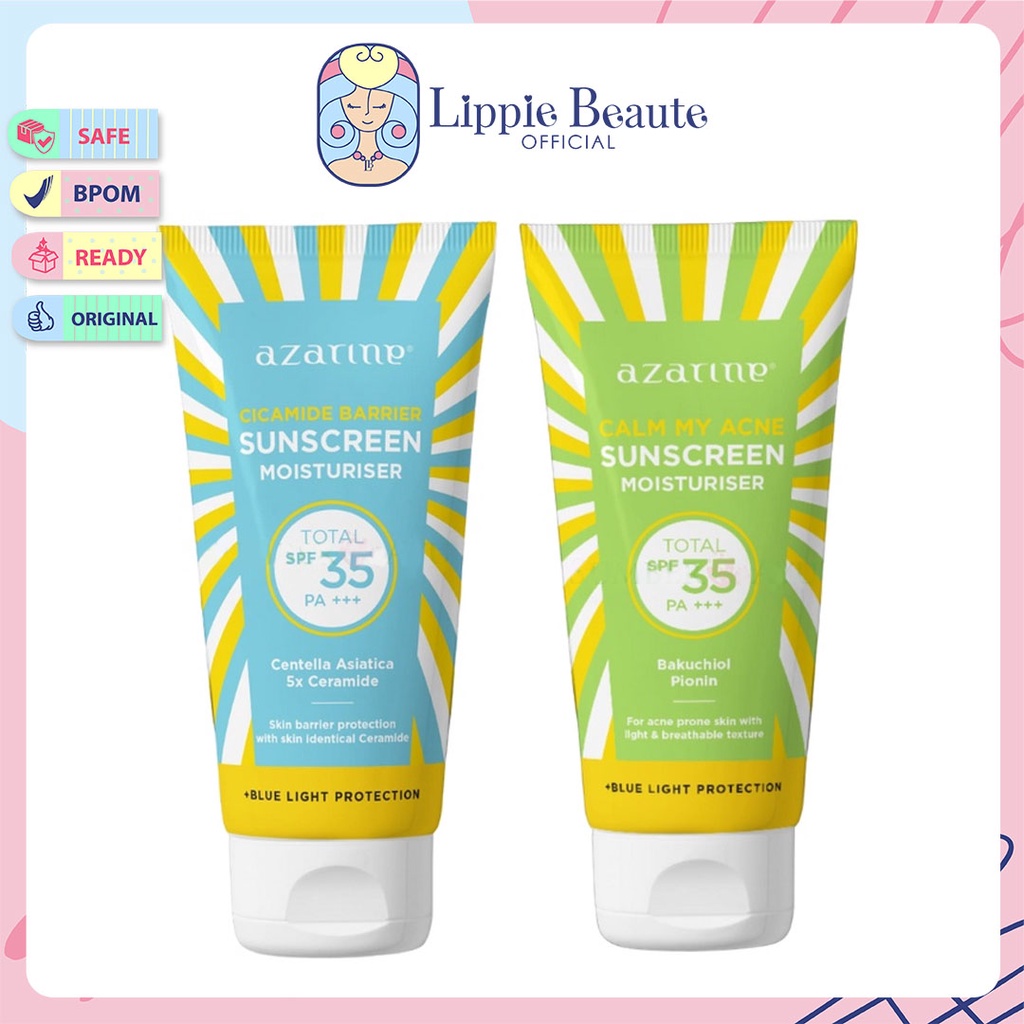 AZARINE - Cicamide Barrier Sunscreen Moisturiser Centella Asiatica 5X Ceramide || Calm My Acne Sunscreen Moisturiser Bakuchiol Pionin SPF 35 PA+++ 40ml