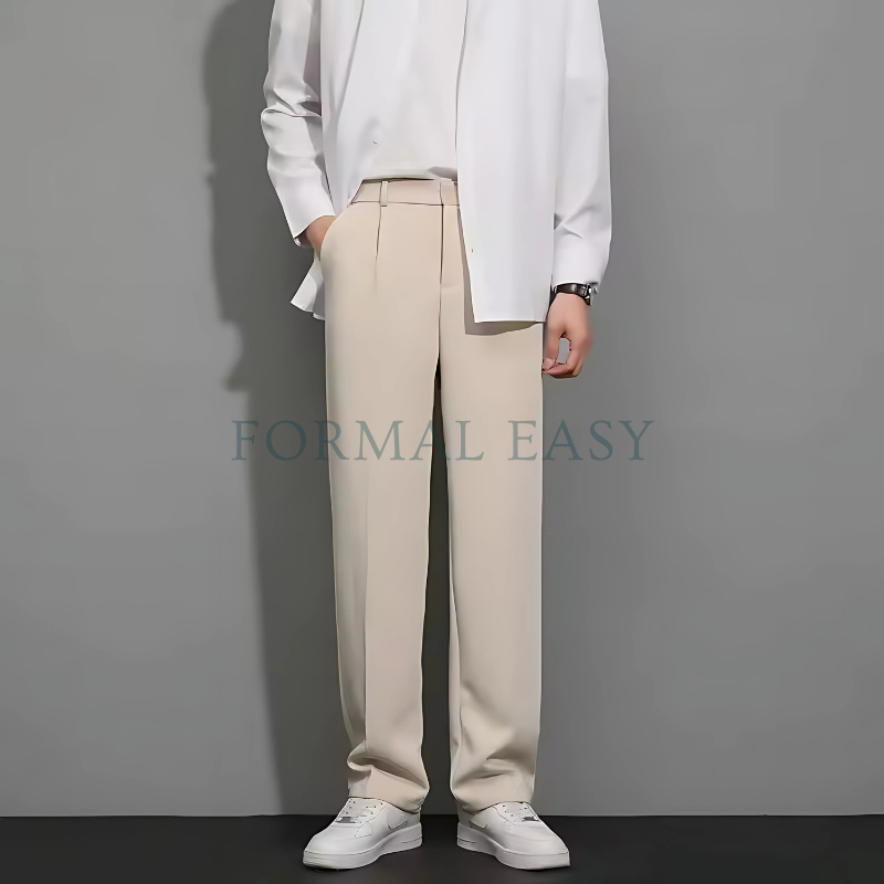 Formal Easy - Celana Pria Formal Loose Pants Cream High Quality
