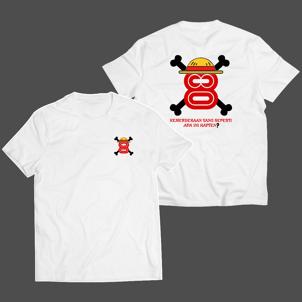KAOS ONE PIECE 80 EDISI KEMERDEKAAN LOGO LUFFY BAJAK LAUT PREMIUM COMBED 24S TERBARU