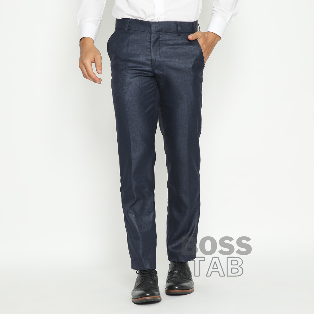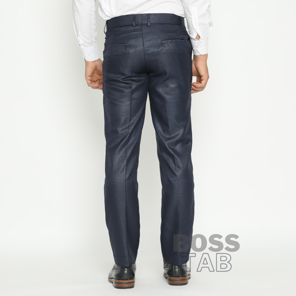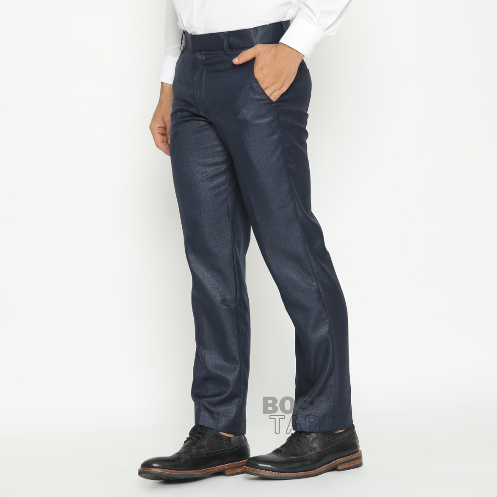 BOSSTAB Celana Kantor Mengkilat Dark Navy Model Slim Fit Pria Original