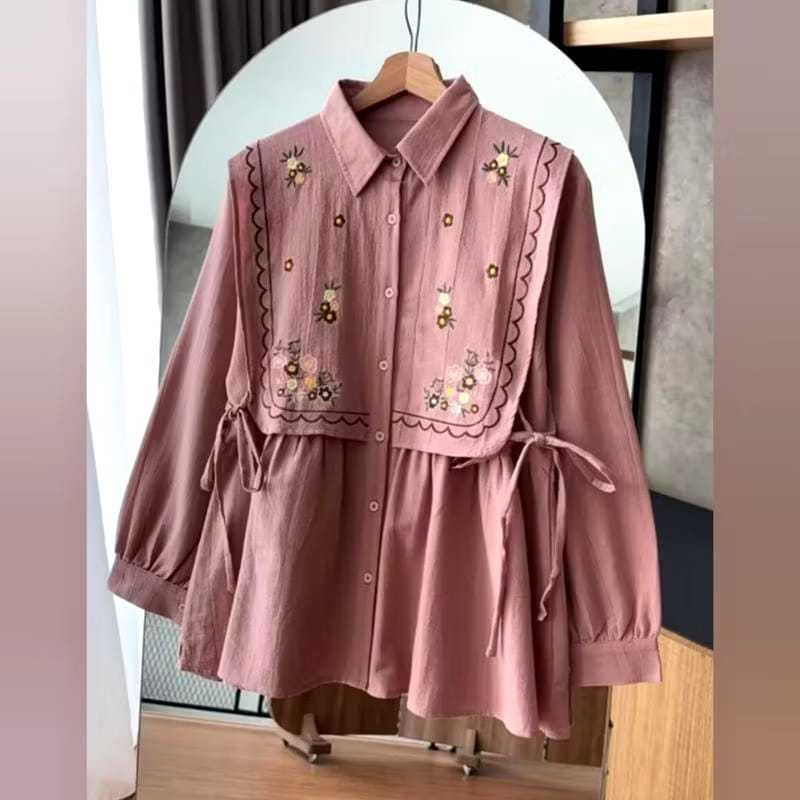 Resha Kemeja Wanita Bordir Bunga Baju Atasan Wanita Terbaru Jumbo
