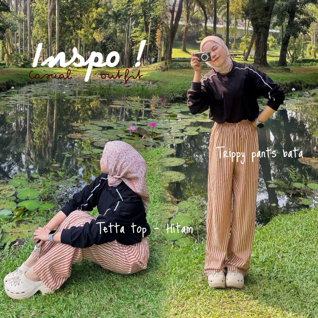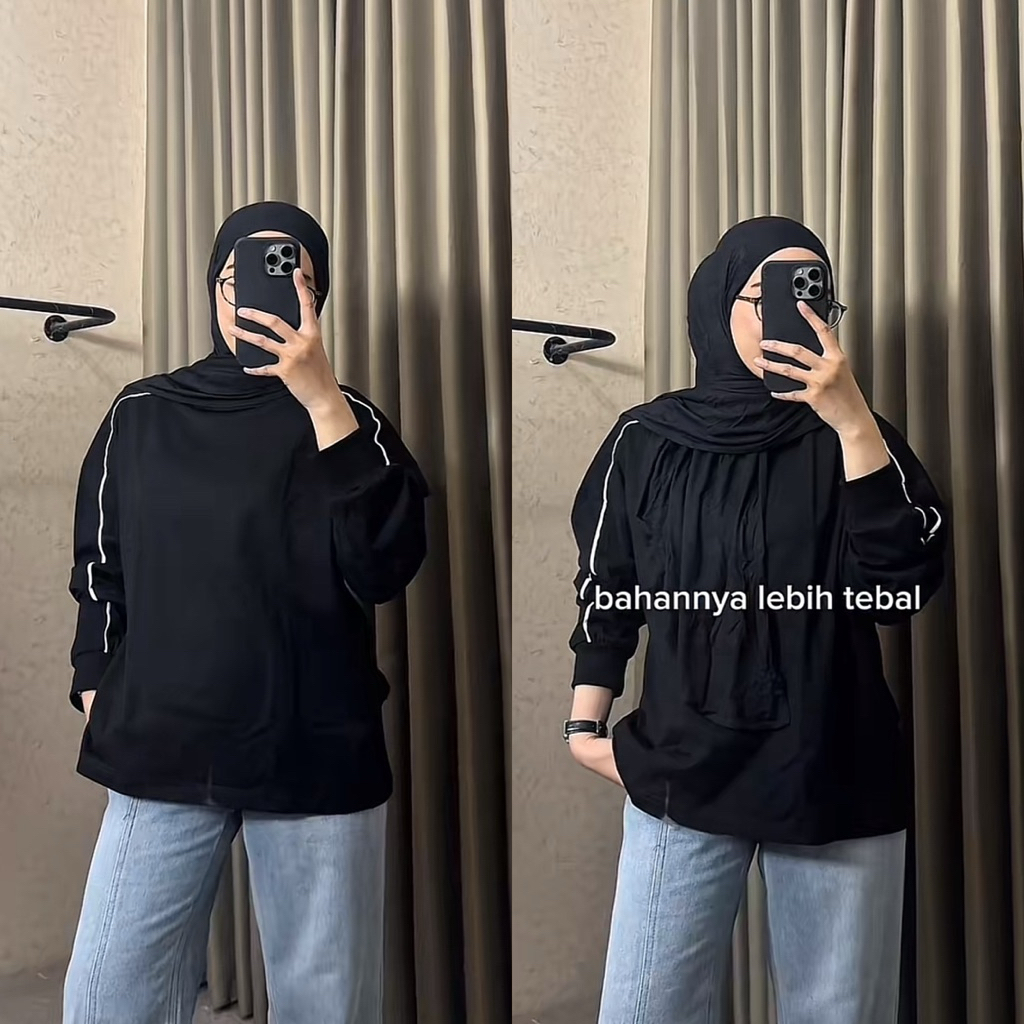 Tetta Kaos Oversized Lengan Panjang Sweatshirt Wanita Casual Combed Model List Polos
