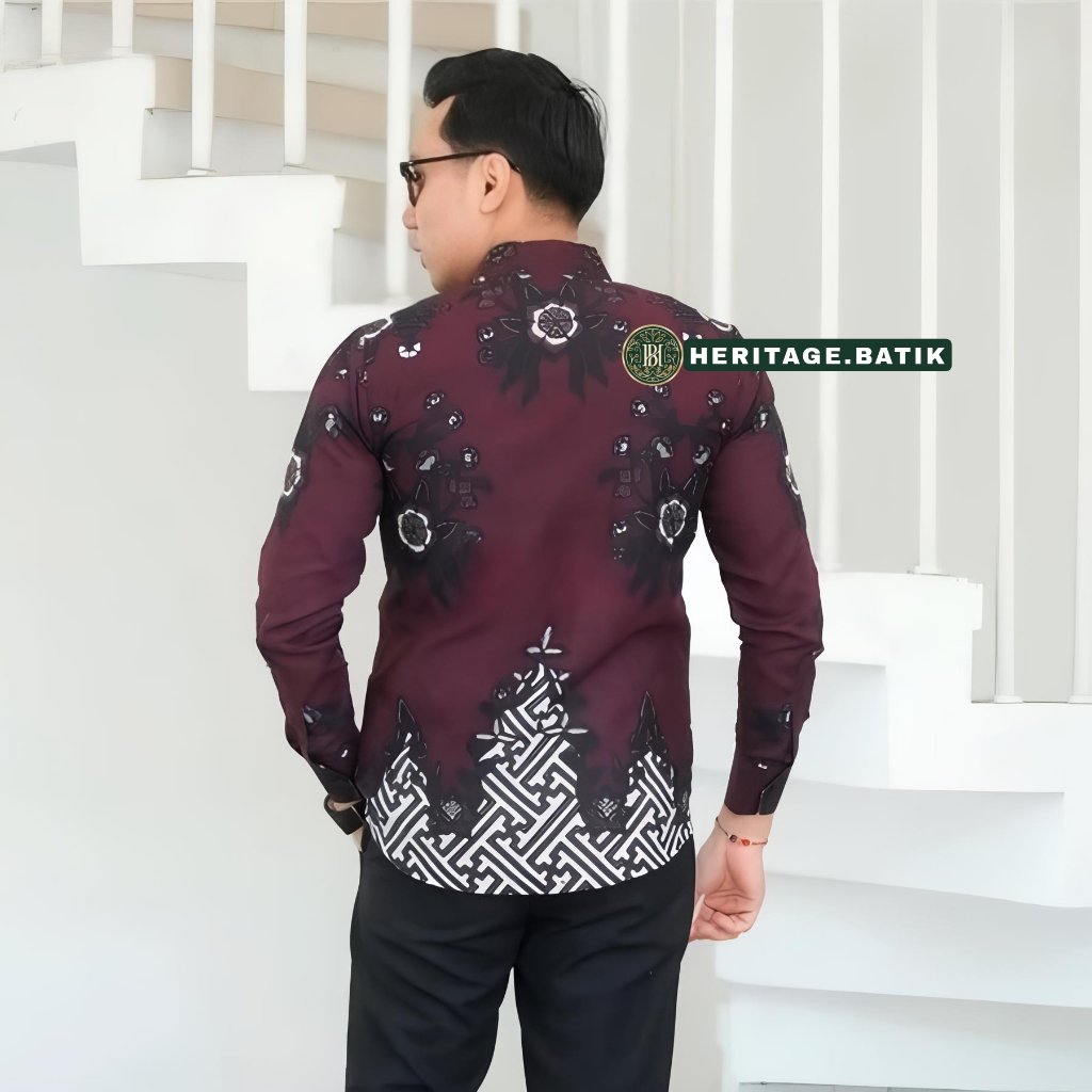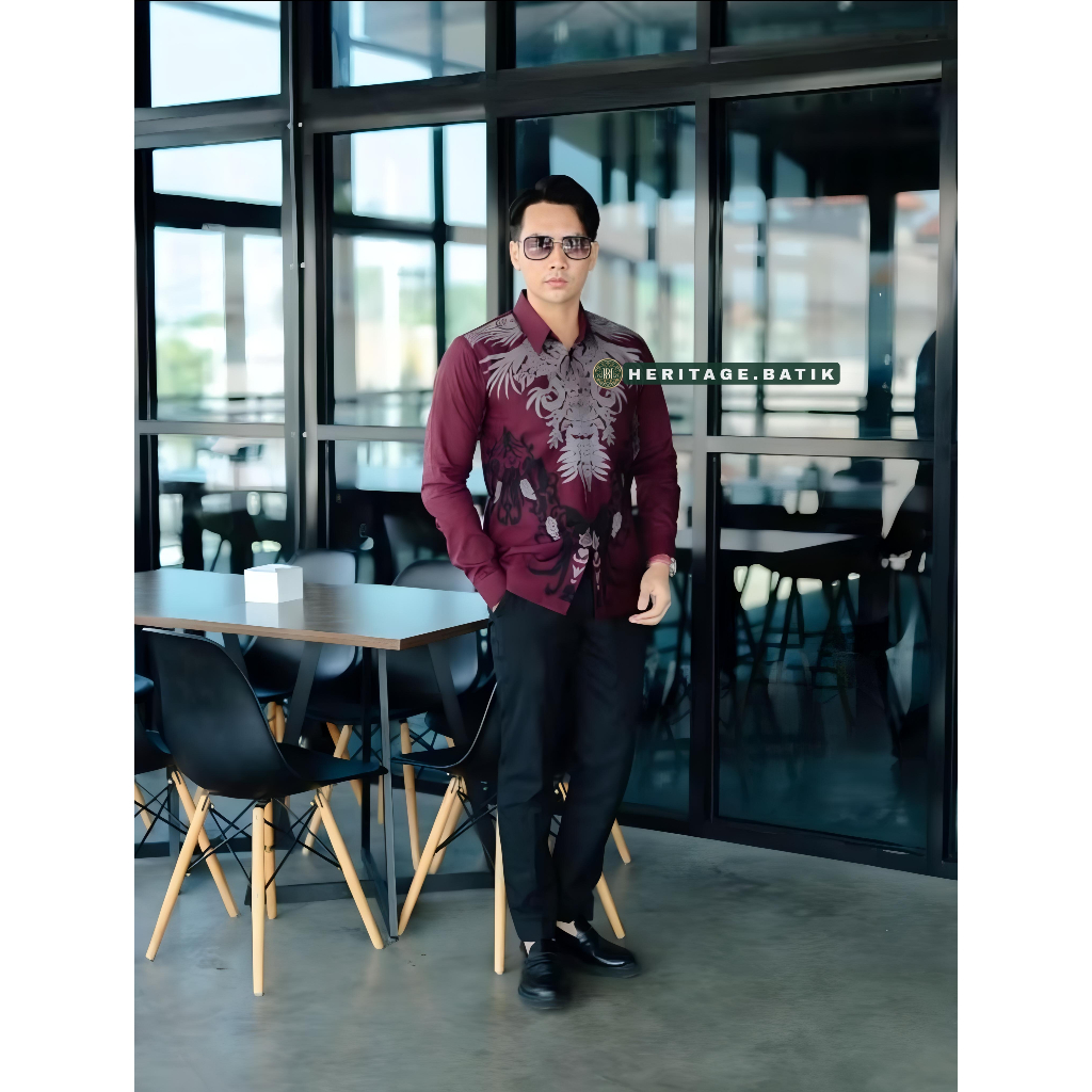 Kemeja Batik Pria MERAH BURGUNDY SLIM FITT Lengan Panjang Best Seller motif kece keren TERBARU & TERLARIS,TERMURAH