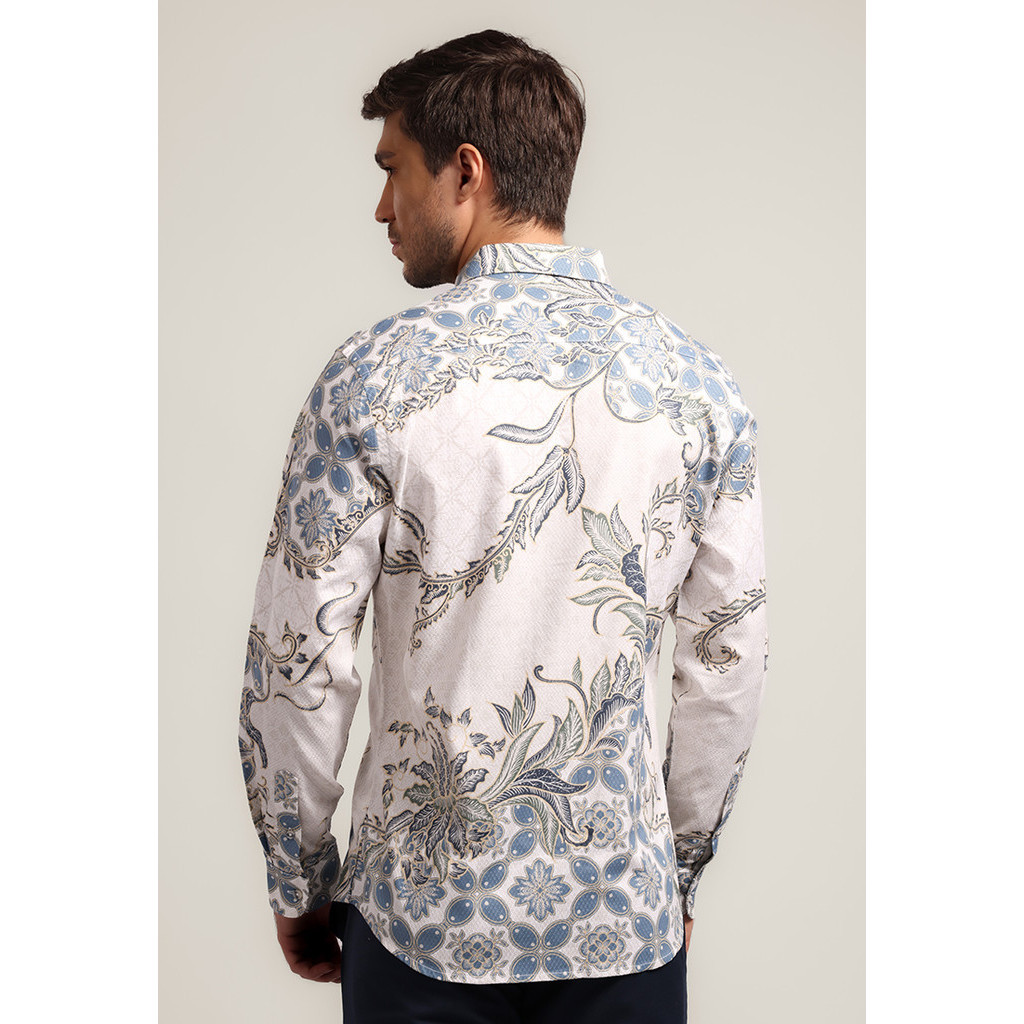 MOC - Kemeja Batik Pria Lengan Panjang Balereng - White