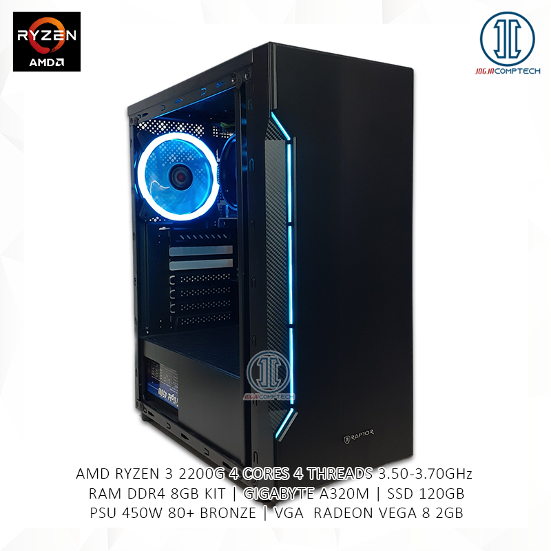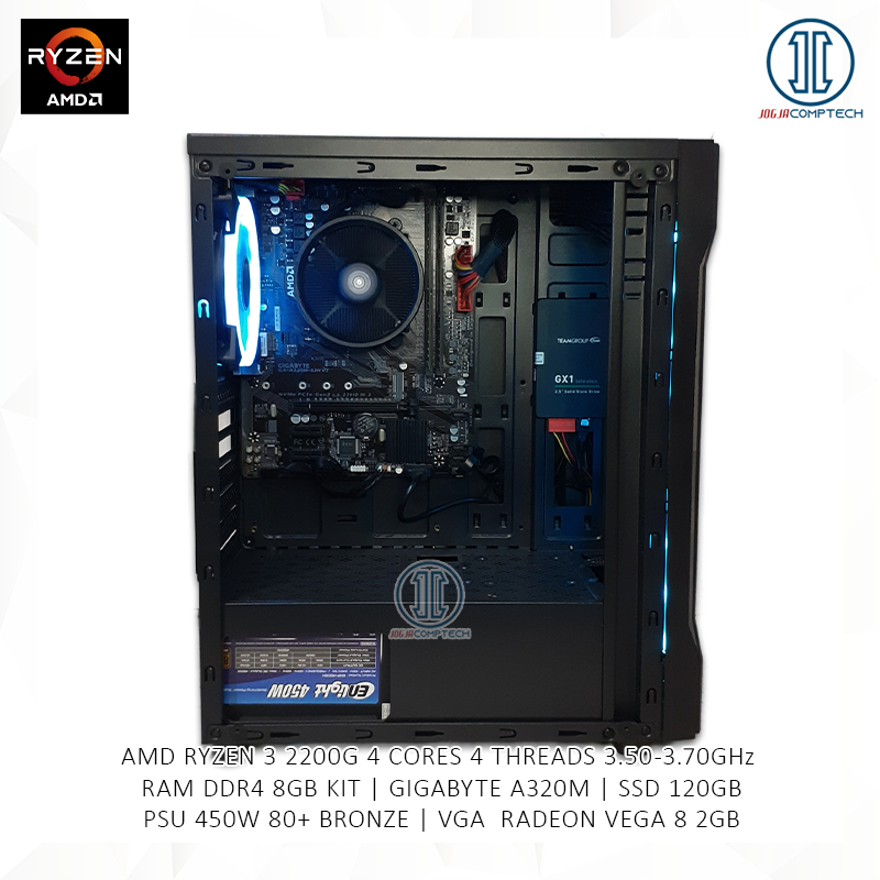 PC Gaming Editing AMD Ryzen 3 2200g GIGABYTE A320M Ram 8gb kit SSD 120gb VGA 2gb Radeon Vega 8 Casing RGB