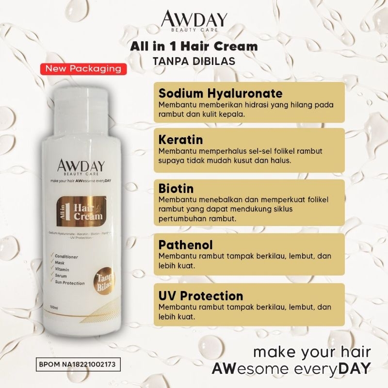 AWDAY BUNDLING PAKET SUPER MURAH 3in1 Shampoo 100ml dan Hair Cream All in 1 Conditioner 100ml BPOM