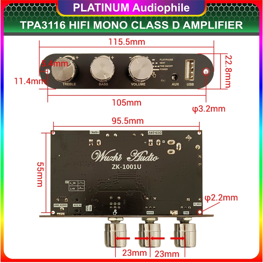 TPA3116 Amplifier Class D Mono 100W TWS Bluetooth 5.3 Hifi TPA3116D2 Original ZK-1001U