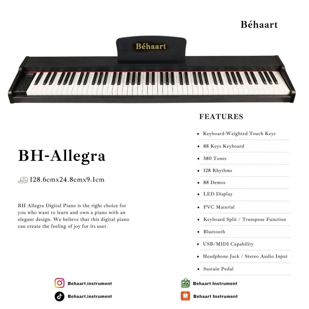 Behaart Digital Piano BH-Allegra 88 Keys (Black), Semi-Weighted Touch Bluetooth GARANSI RESMI 1 TH
