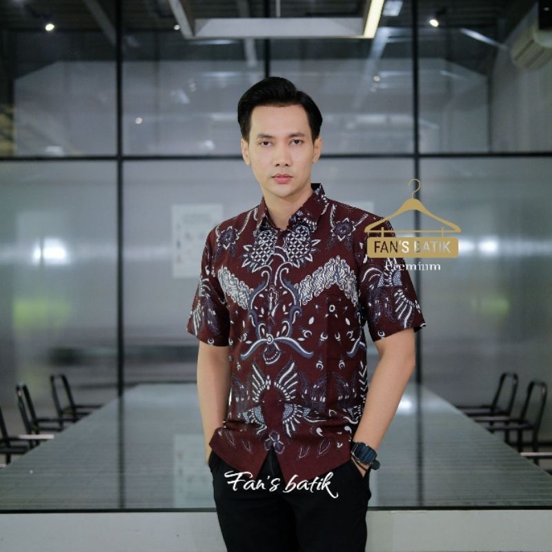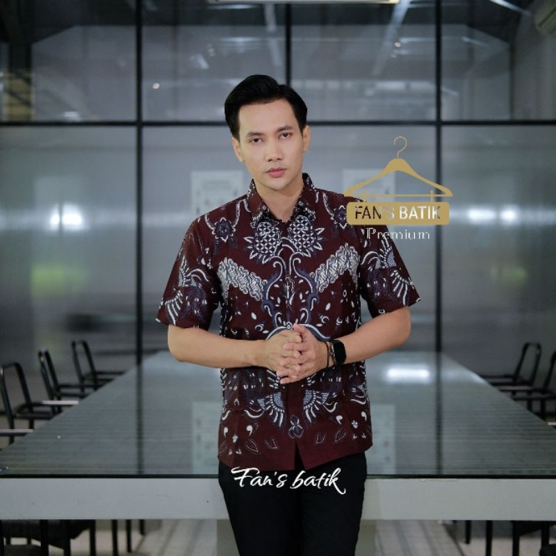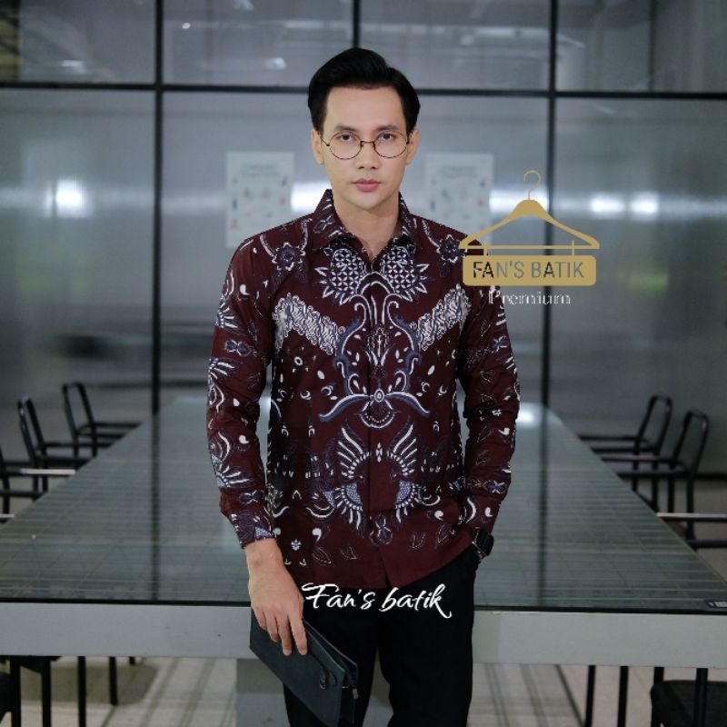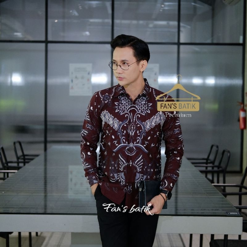 NEW ANGGARA kemeja batik pria burgundy hitam lengan panjang dan pendek/ atasan baju pria burgundi hitam formal kasual
