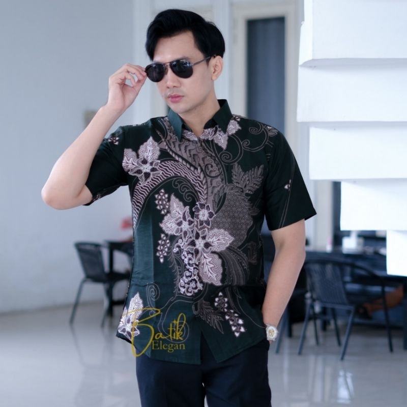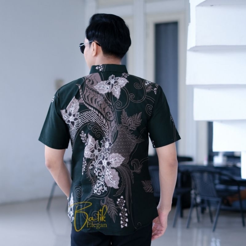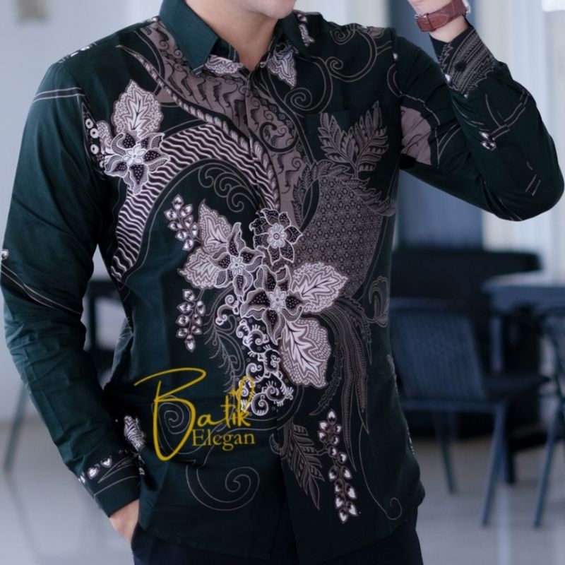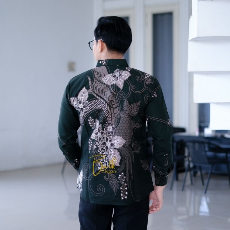 Batik Elegan Motif WIRATAMA Hijau Emerald green Kemeja Batik Pria Lengan Panjang Pendek Slim fit Premium Baju Atasan Hem Cowok Elegant Laki Laki Moderen Katun Halus Lapis Furing
