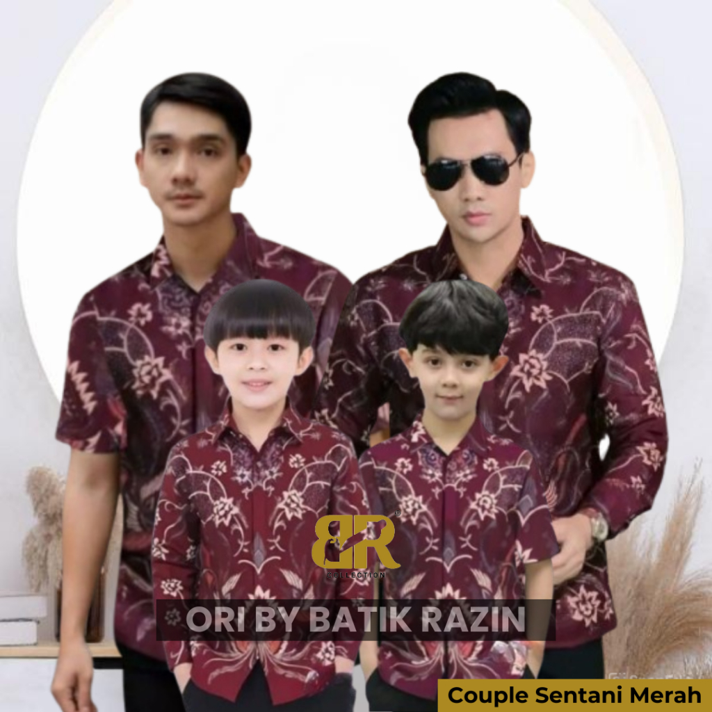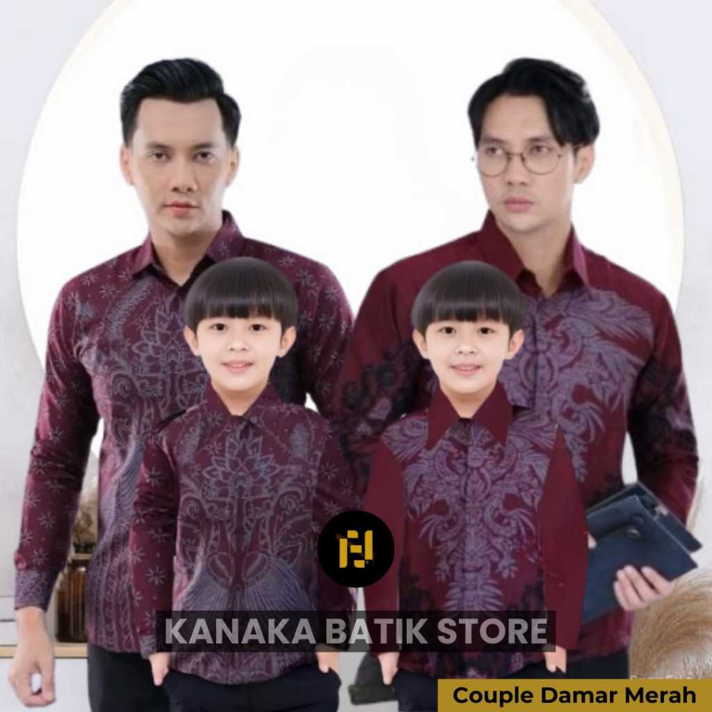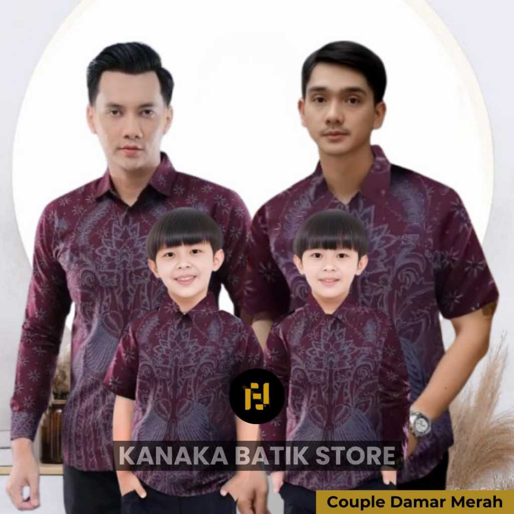Terbaru Kemeja Batik Couple Ayah Dan Anak Warna Maron & Merah - Kemeja Batik Premium Slimfit