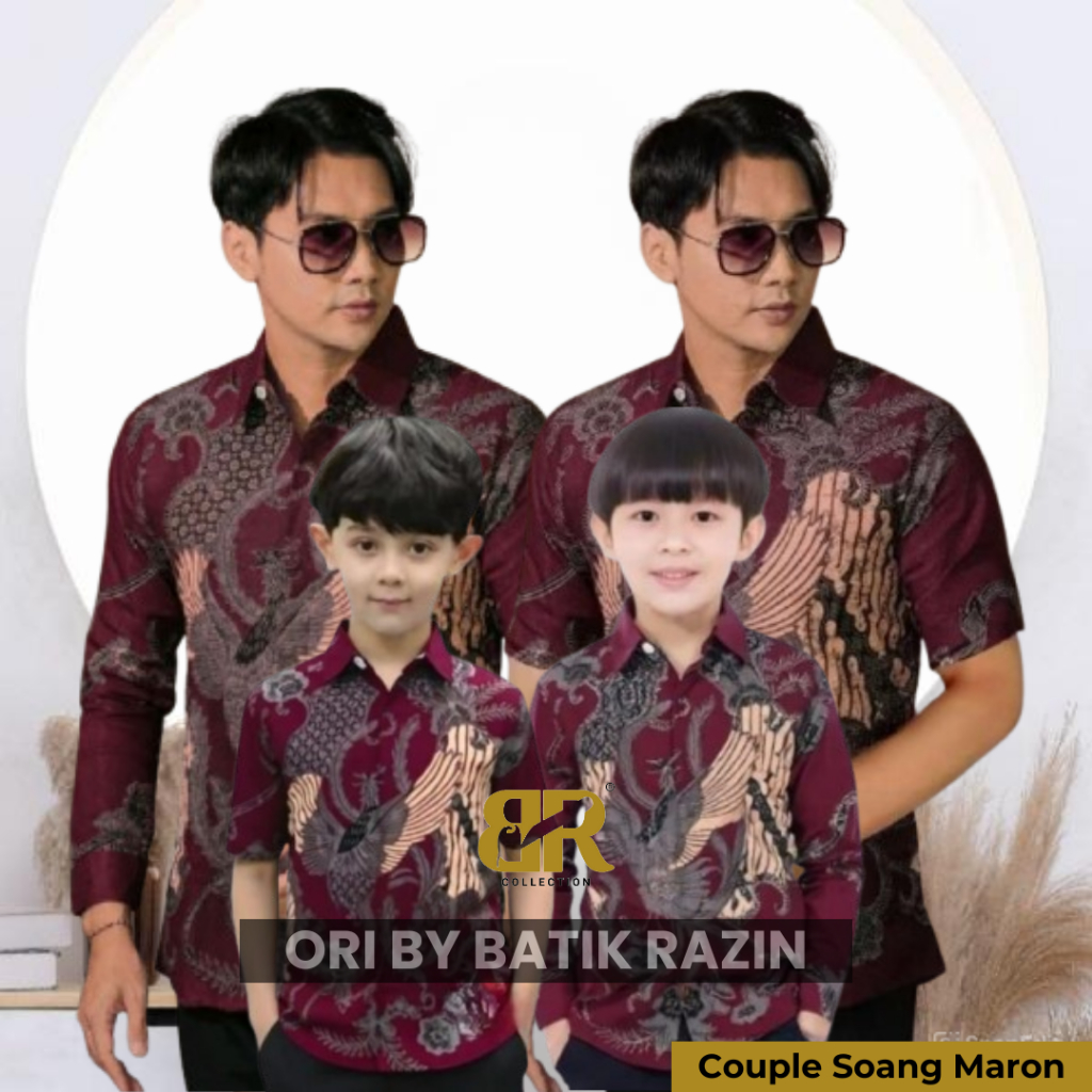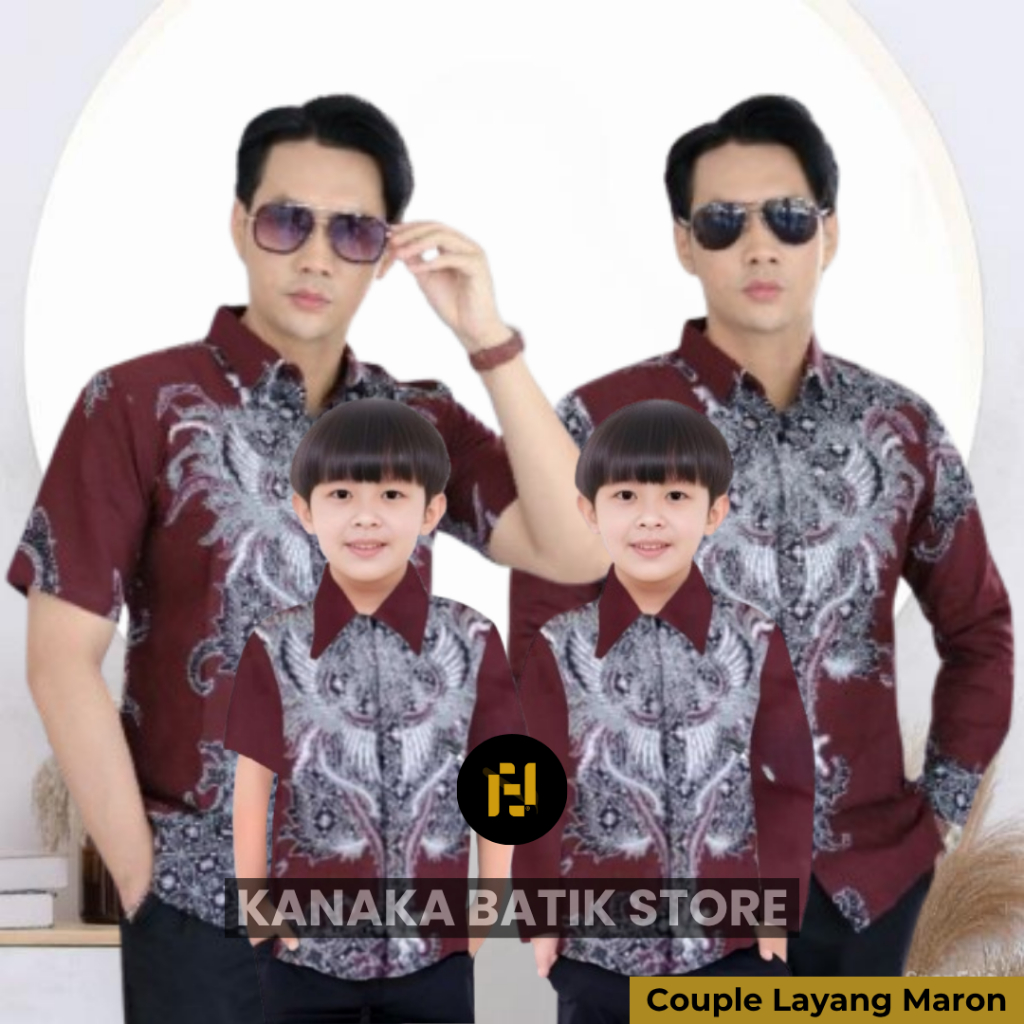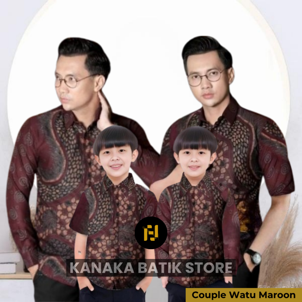 Terbaru Kemeja Batik Couple Ayah Dan Anak Warna Maron & Merah - Kemeja Batik Premium Slimfit