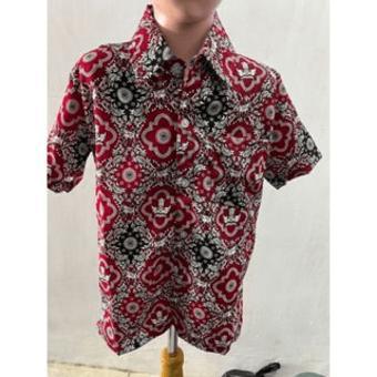 Seragam Sekolah Batik Merah Anak SD Tangan Pendek Unisex Kelas 1-6 - Fashion