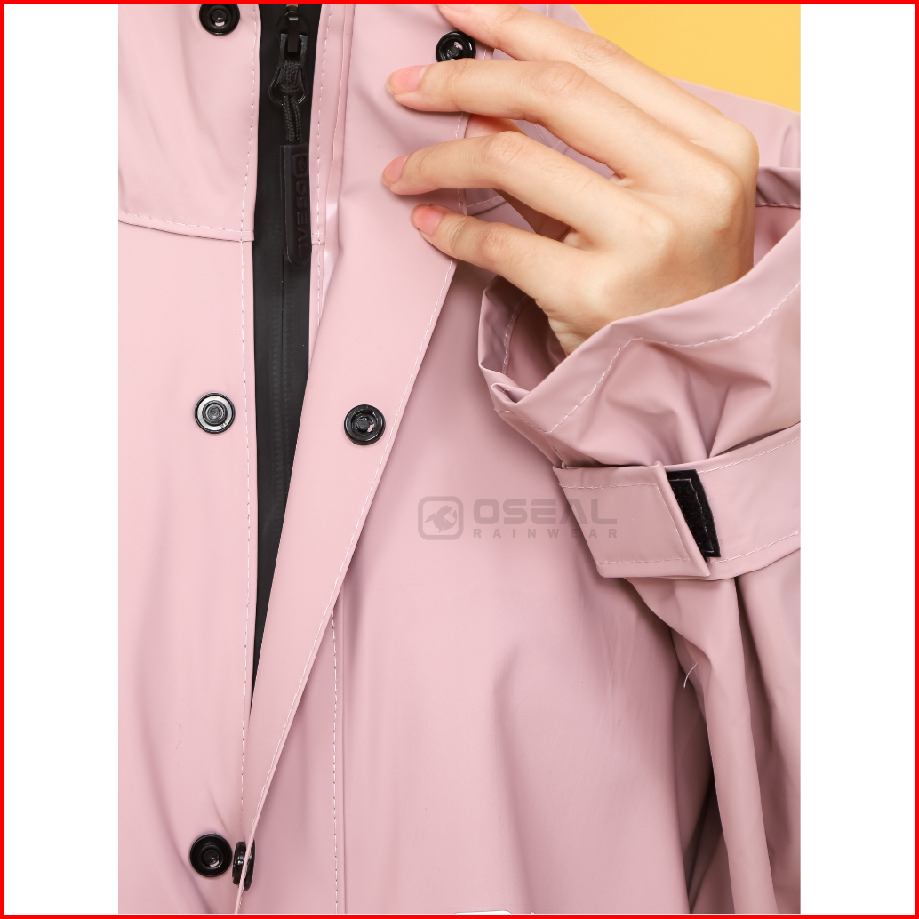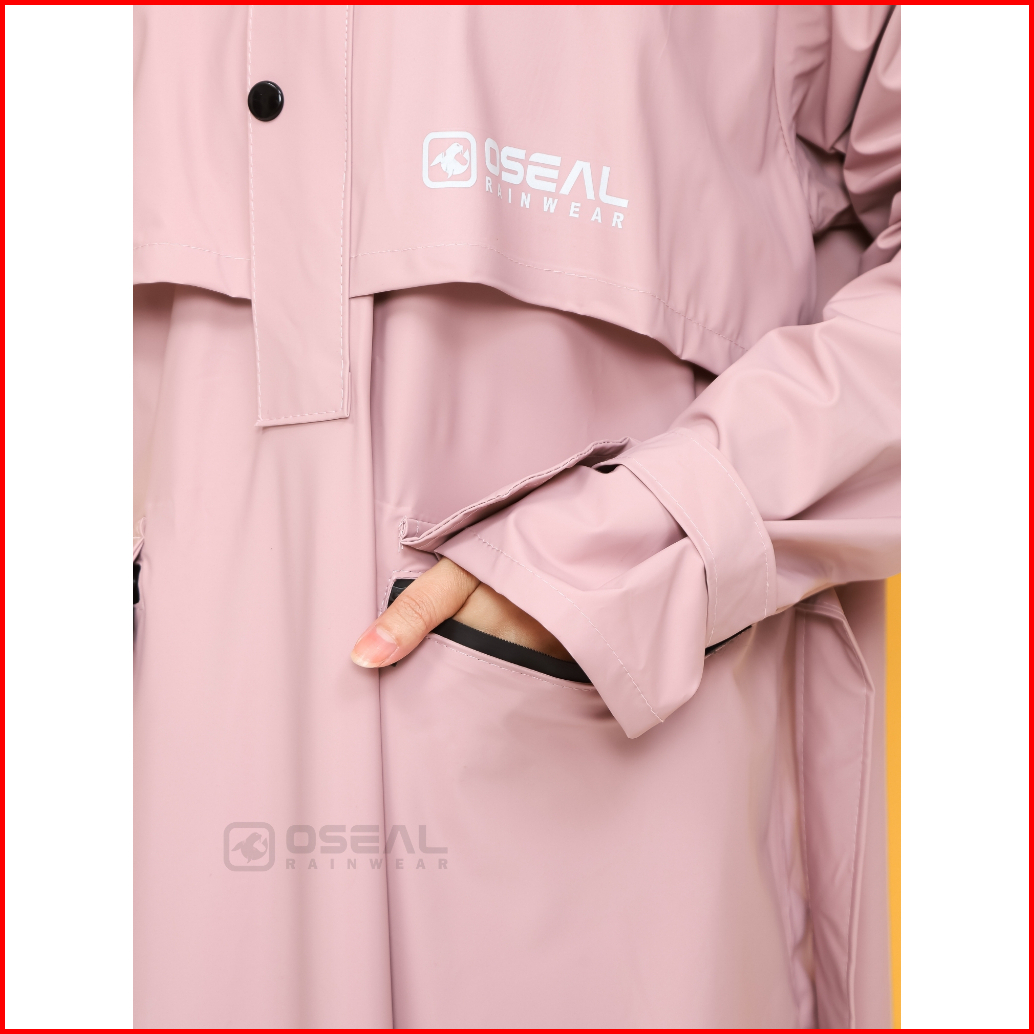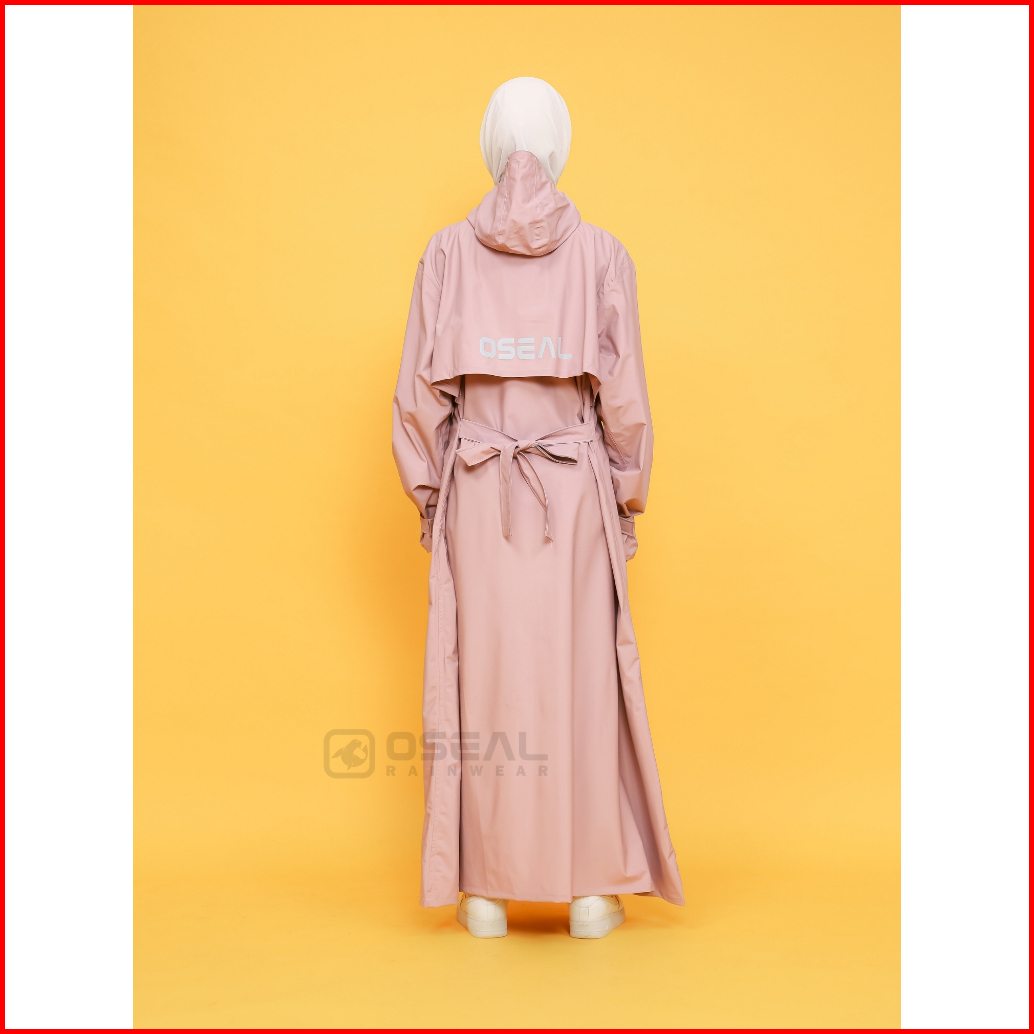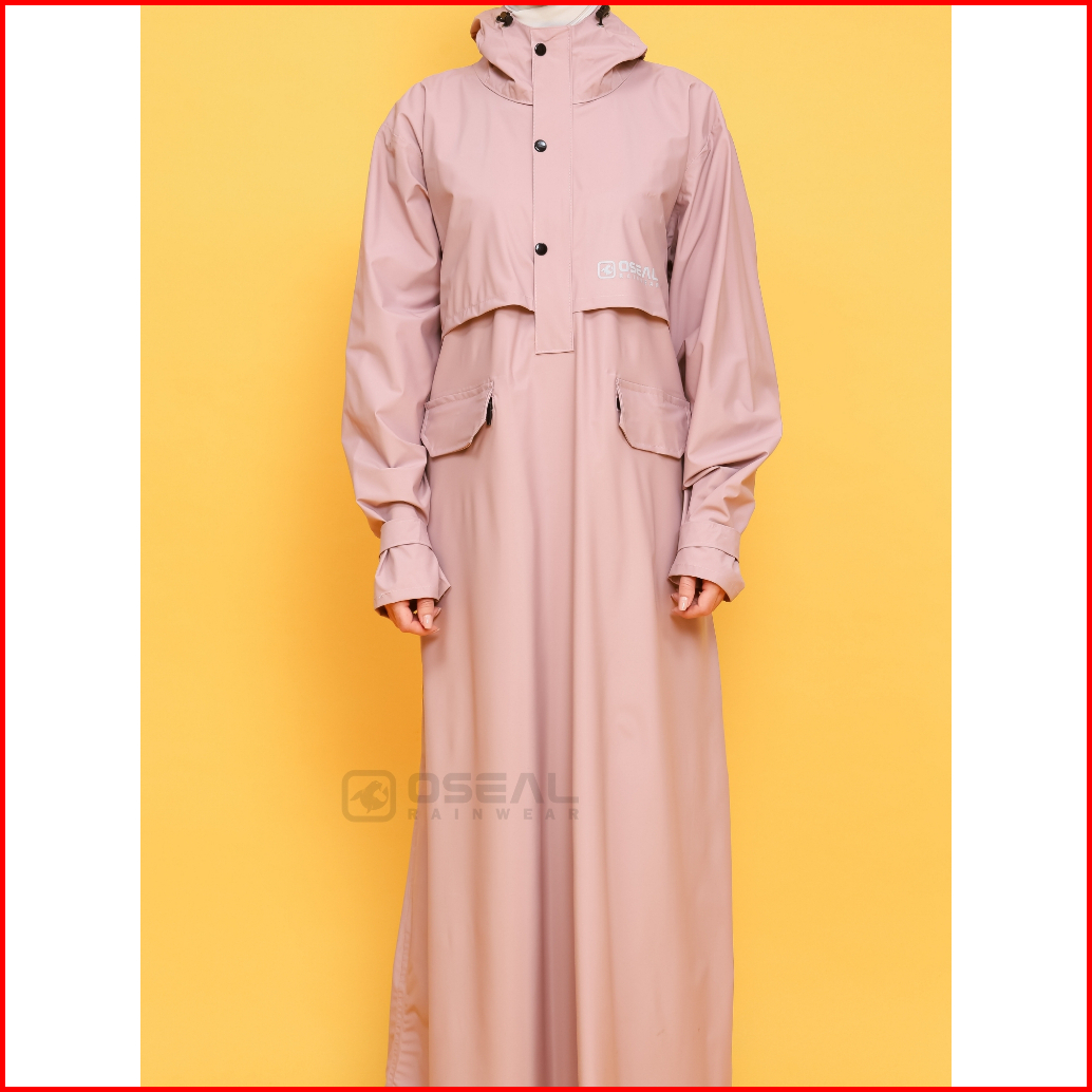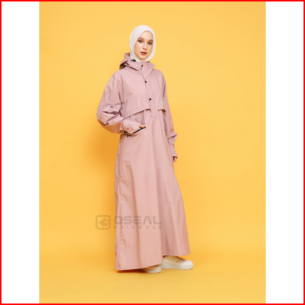 Oseal Jas Hujan Wanita Gamis Muslimah Jumbo Full Seal Althea Series Pink
