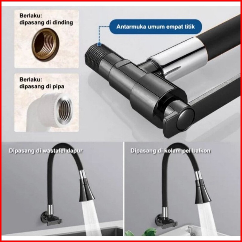 Sus 304 Kran Angsa Tembok Fleksibel Kran Cuci Piring Hitam Kran Angsa Kran Dapur Kran Wastafel 2 Model