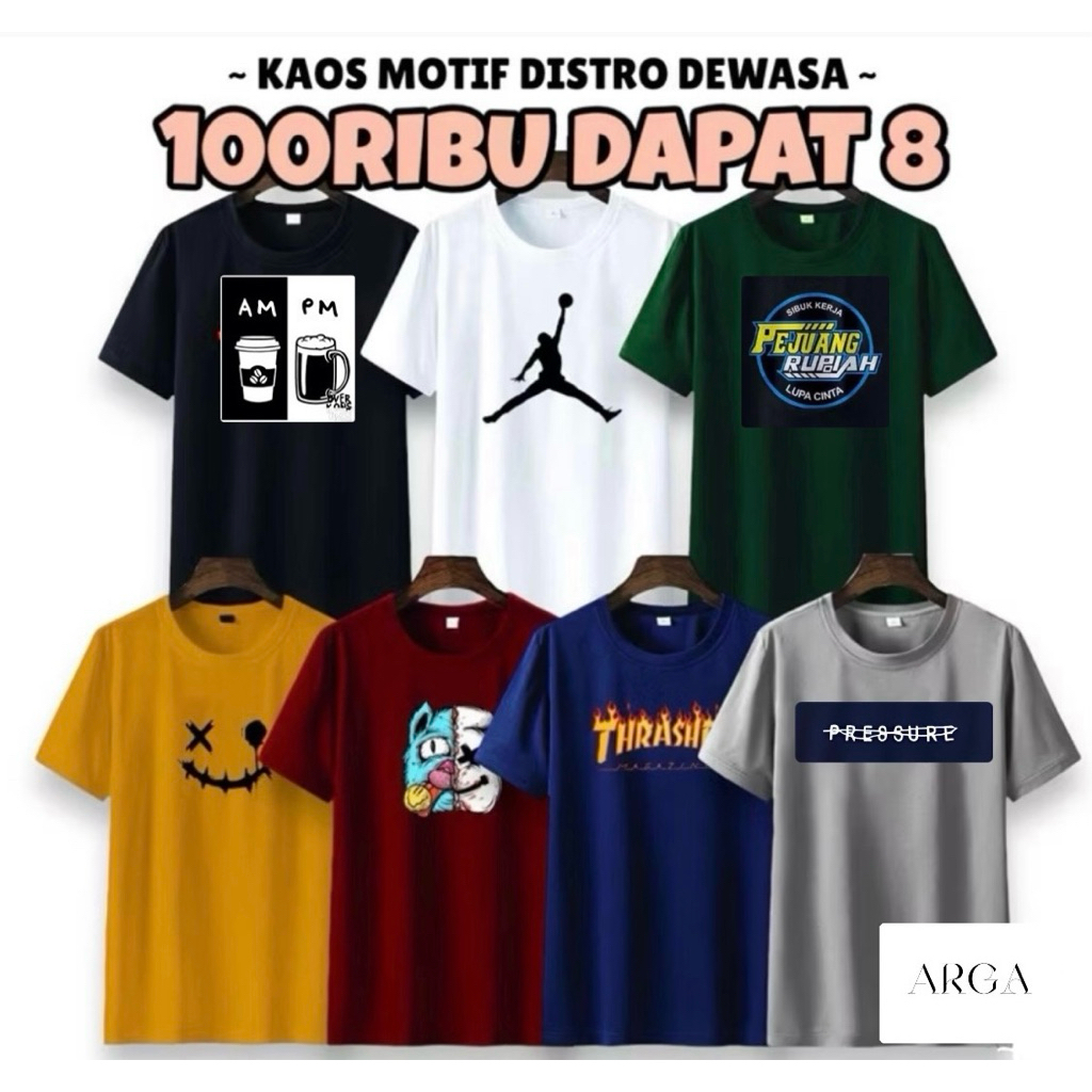 PAKET 100RB DAPAT 8 KAOS MOTIF DISTRO PRIA WANITA