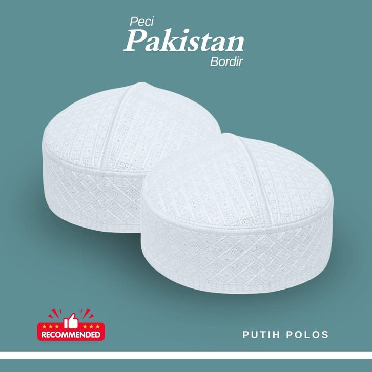 Peci Pakistan Bordir Putih Polos Alat Sholat Pria dan Anak Pesantren