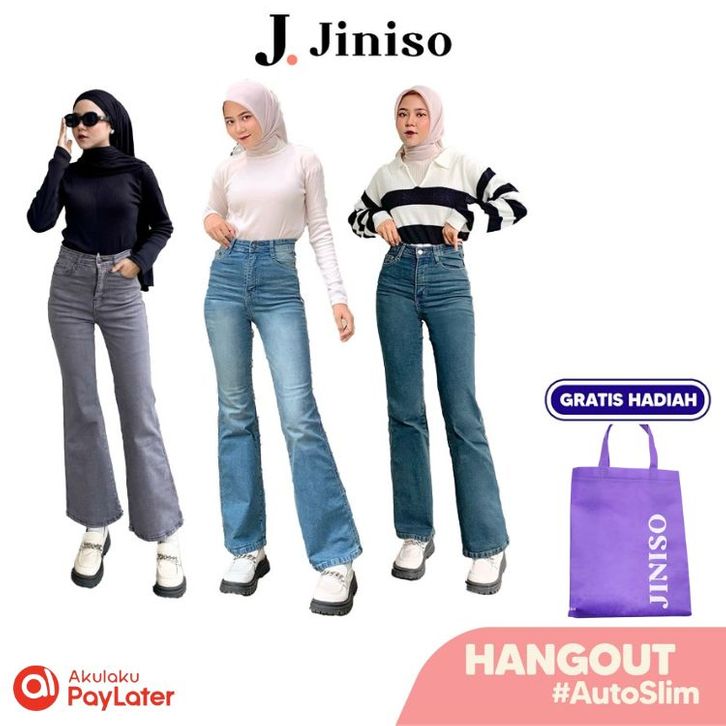 JINISO OFFICIAL CELANA JEANS WANITA HIGHWAIST STRETCH CUTBRAY POCKET JEANS ORIGINAL