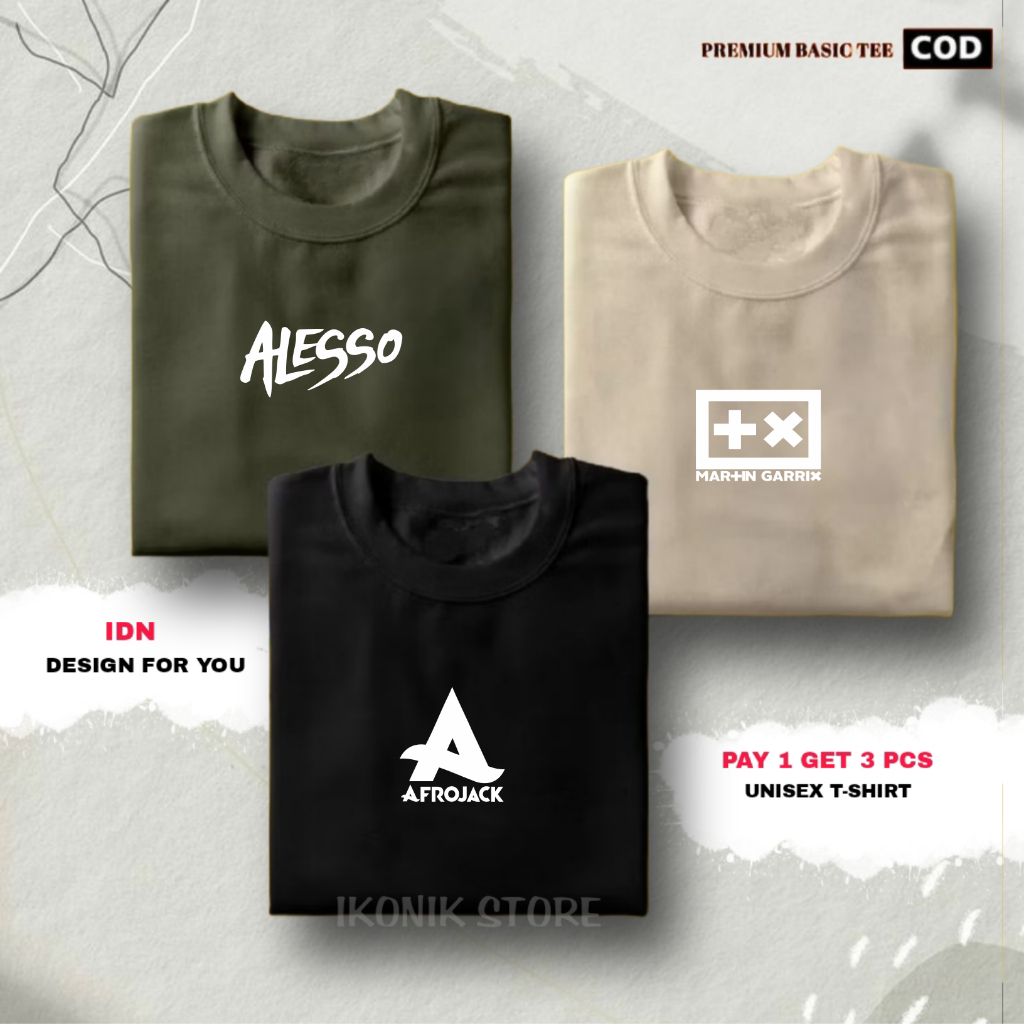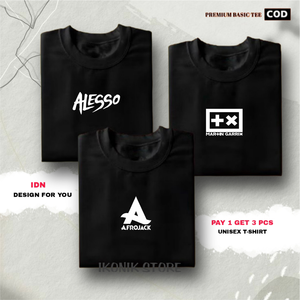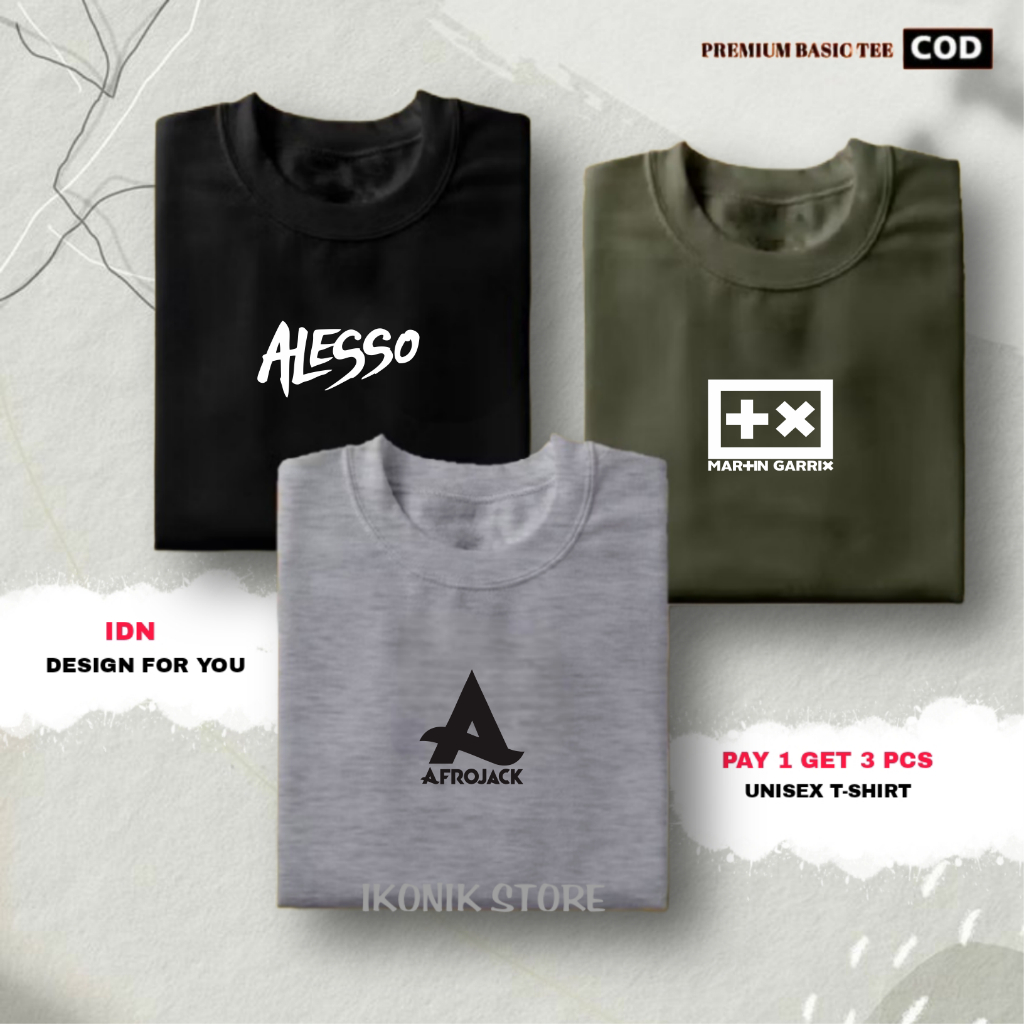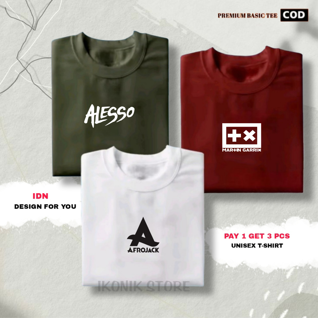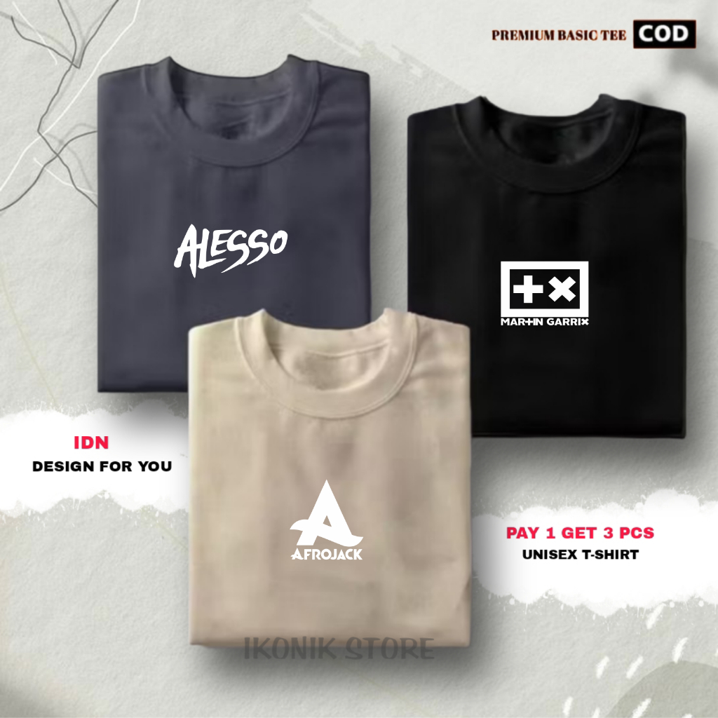 PAY 1 GET 3 PCS - IKONIK STORE T-Shirt - Kaos Distro Pria Keren Bahan Cotton 100 PERSEN Quality Combed 30s - Kaos Cowok Cewek Terbaru Logo AFROJACK - ALESSO Print White